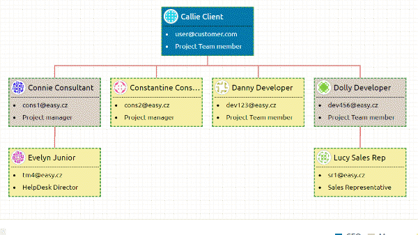 Структурата на организацията е форма на йерархия на дърво, където всеки потребител в организацията, с изключение на горния, е подчинен на един друг потребител. Този подредба помага да се определи как се насочват стандартно дейности като разпределение на задачи, координация и надзор към постигането на организационните цели. Тя също така определя кой е подходящ за одобряване на заявки за отпуск, подадени от потребителите. Структурата на организацията е самостоятелен плъгин за Easy Redmine. Тъй като той не е включен в основното управление на проекта, той трябва да бъде закупен отделно в портала на клиента.