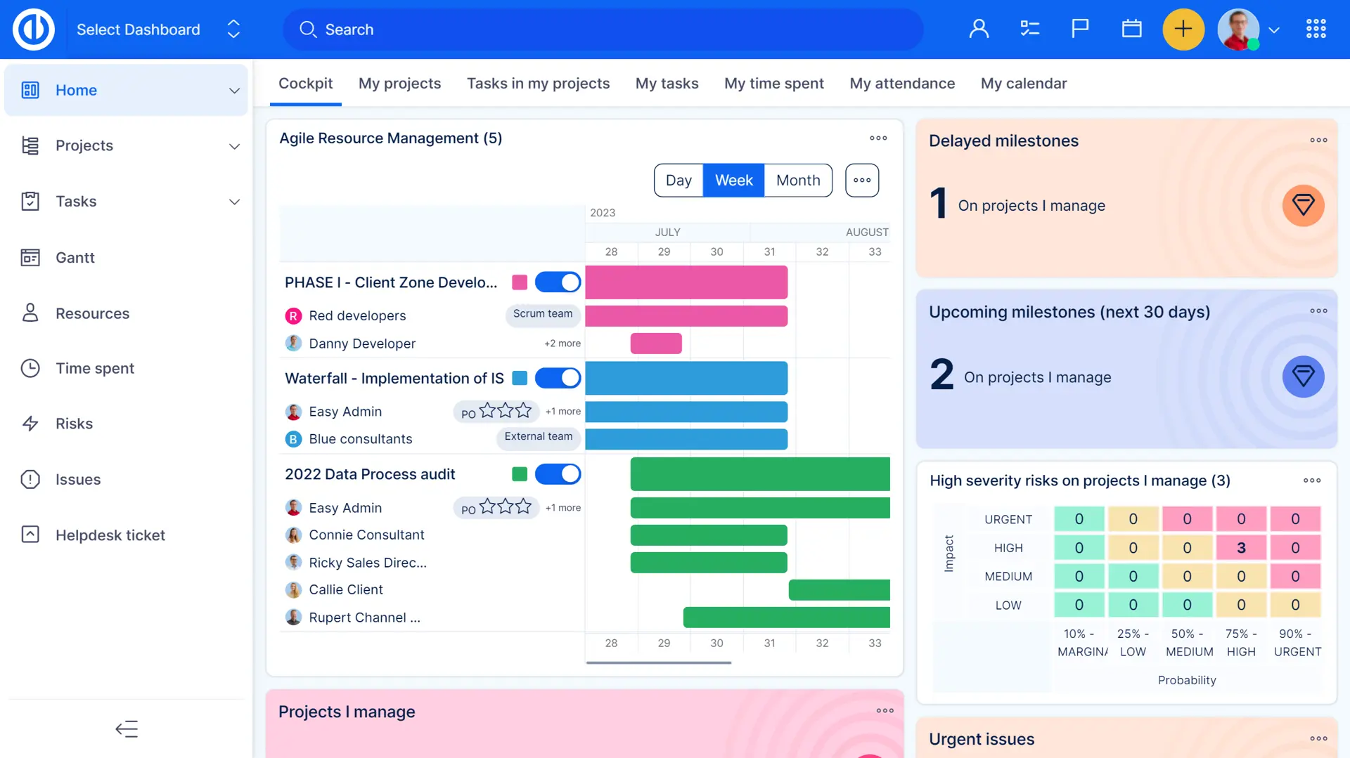 Предварително зададената лична табла, подходяща за ролята на Управител на проект, е проектирана да осигури бърз преглед на текущата производителност, свързана с управлението на проекти.