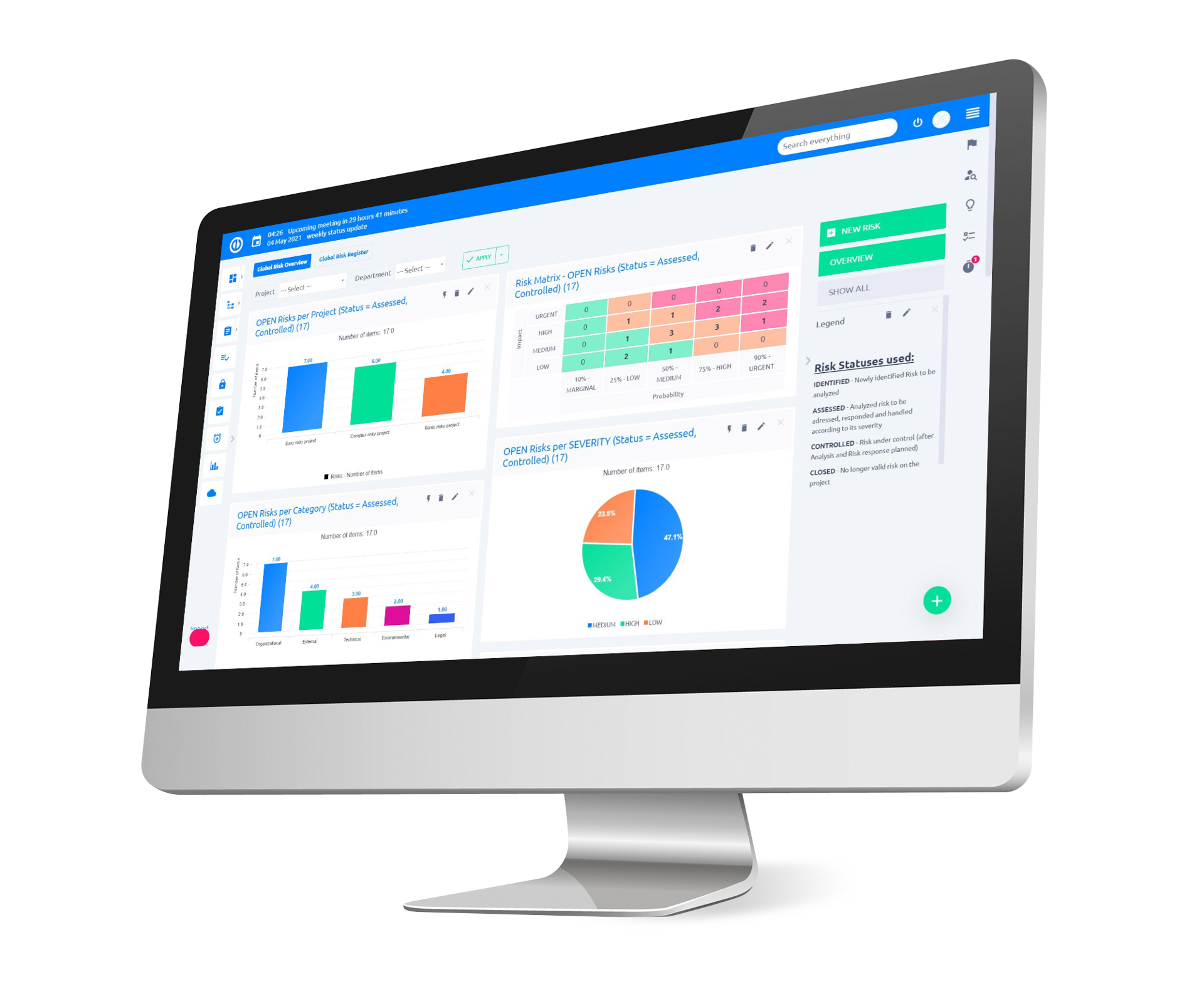 Управлението на риска е задължителен процес за всяко правилно управляван проект. Този инструмент позволява да се зададе матрицата на риска в цялата организация, да се управляват рисковете в проектите и да се осигури глобално докладване и преглед на риска за управлението. Глобалният модул е подходящ за ролите на Линеен мениджър, Мениджър на риска или Офицер за управление на проекти (PMO), докато модулът за проекта е оптимален за Мениджър на проекта, който му позволява да управлява рисковете в проекта по контролиран начин за всеки конкретен проект под неговото наблюдение.