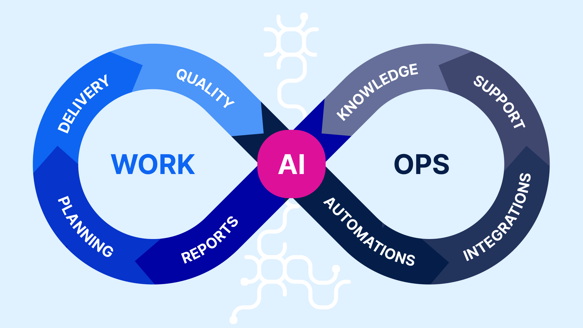 WorkOps is the solution—an ecosystem approach that orchestrates teams, processes, and AI into a unified system delivering continuous value through 8 interconnected phases: Planning, Delivery, Quality, Automations, Integrations, Support, Knowledge, and Reports.
