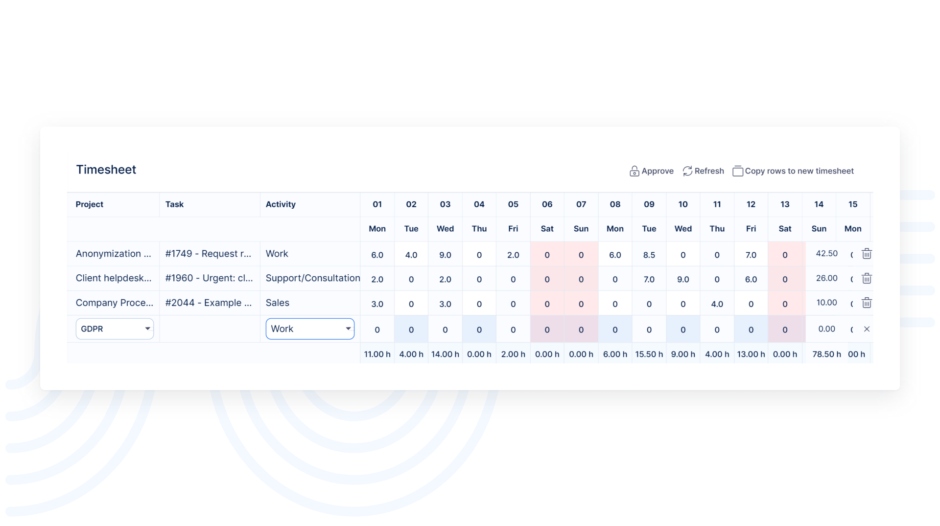 Redmine工时表插件的强大之处在于批量记录、编辑和管理时间条目的可能性。一次完成所有操作,从而显著提高项目管理效率!
