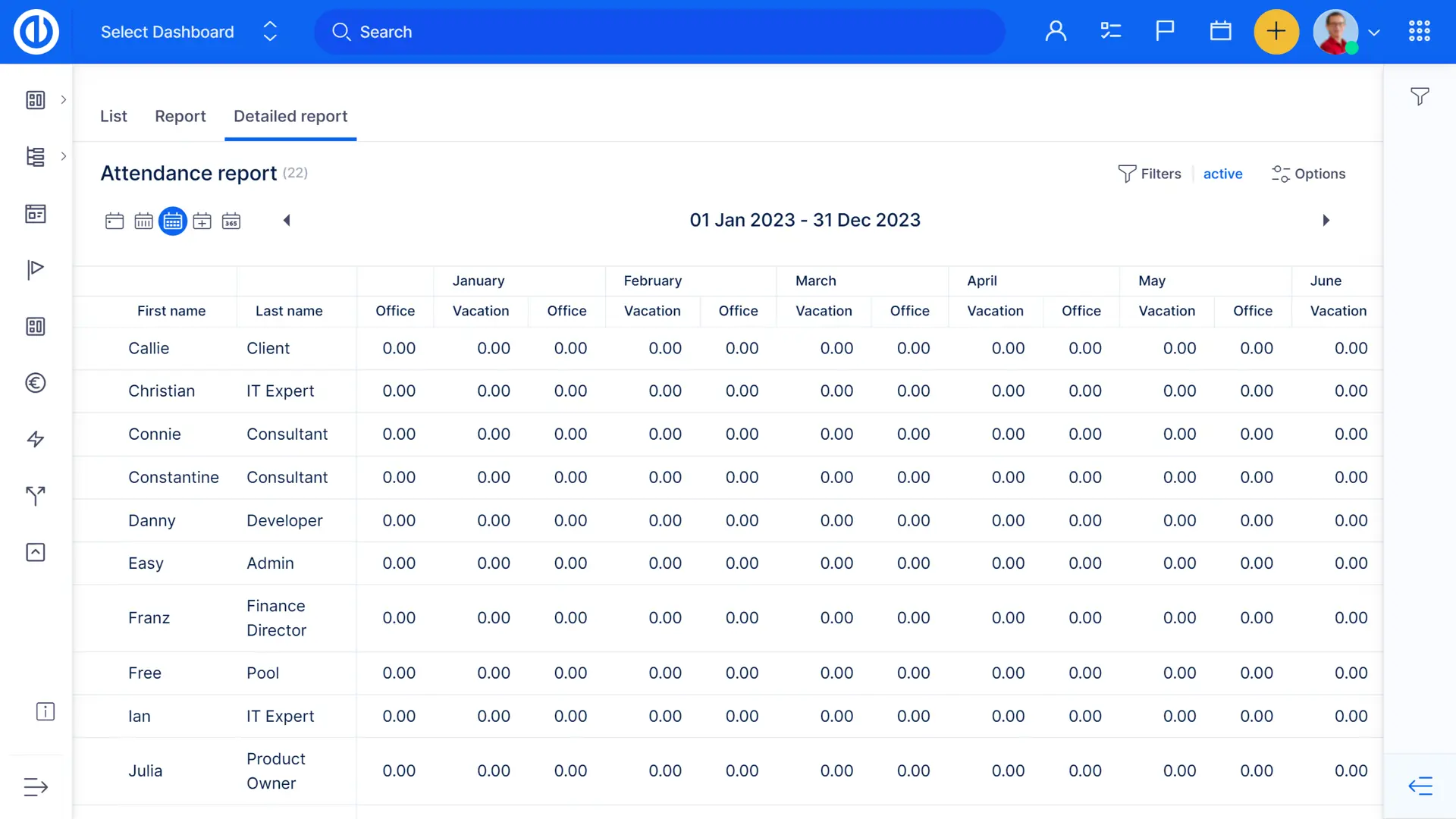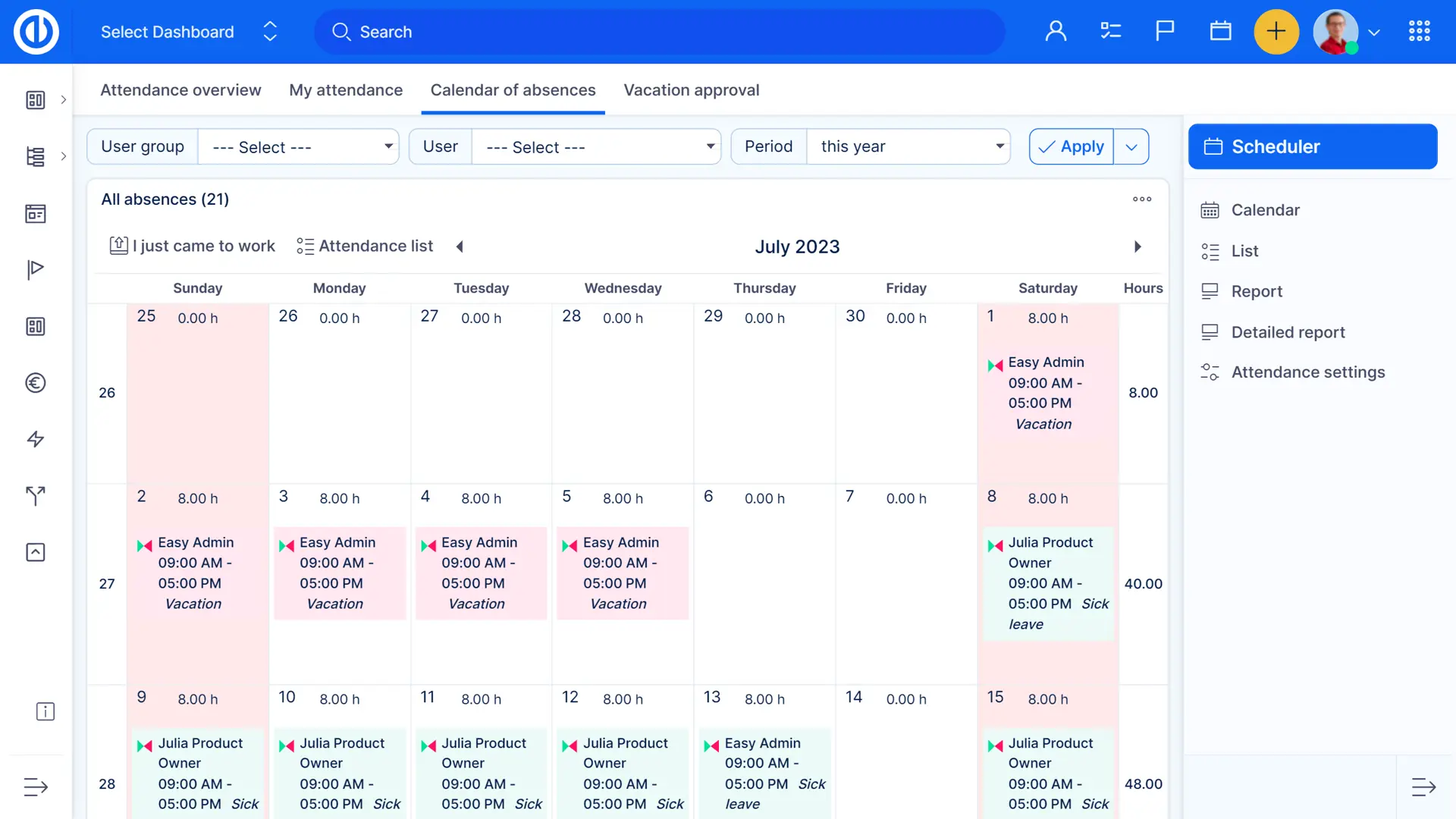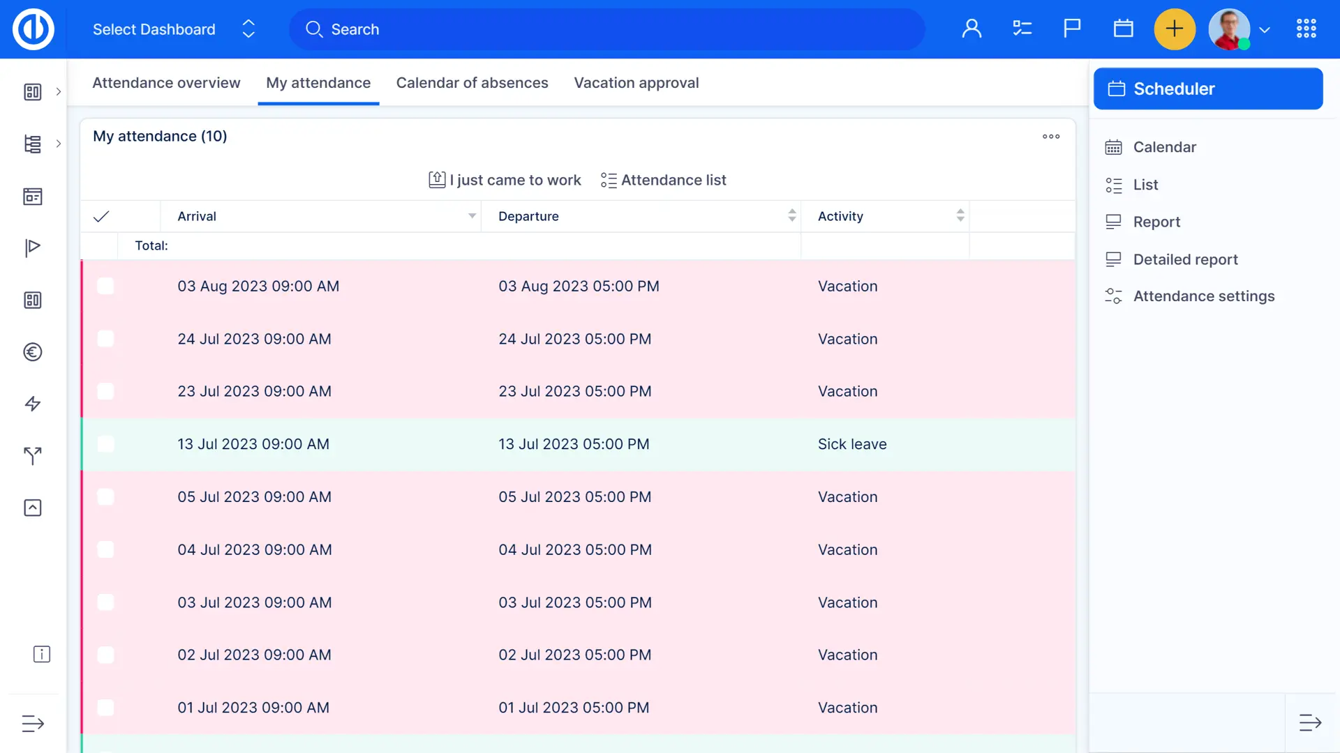 - Logning af tilstedeværelse ved hjælp af personlig kalender (kontor, sygeorlov, ferie, hjemmekontor osv.)
