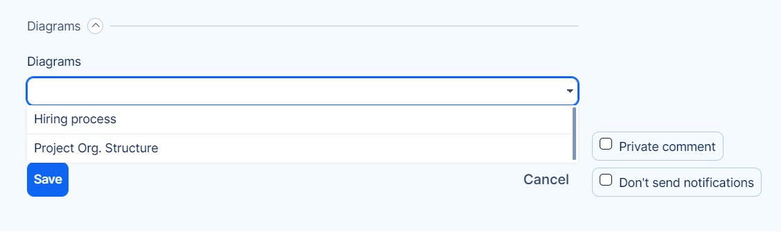 - Embed link - will give you link which can be entered into a comment, to display the diagram directly in text field.