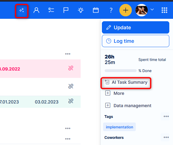 AI features in Easy Redmine and their related access points (buttons, menu items,...) are now always marked with a sparkle, to follow the widely recognized symbol. This is a step to more precisely inform user about potential interaction AI before they choose to do so.