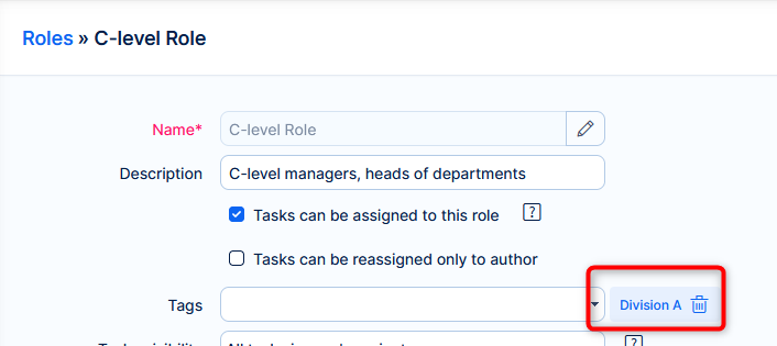 3. When managing role configuration or project memberships, click your tag to instantly filter only relevant data.