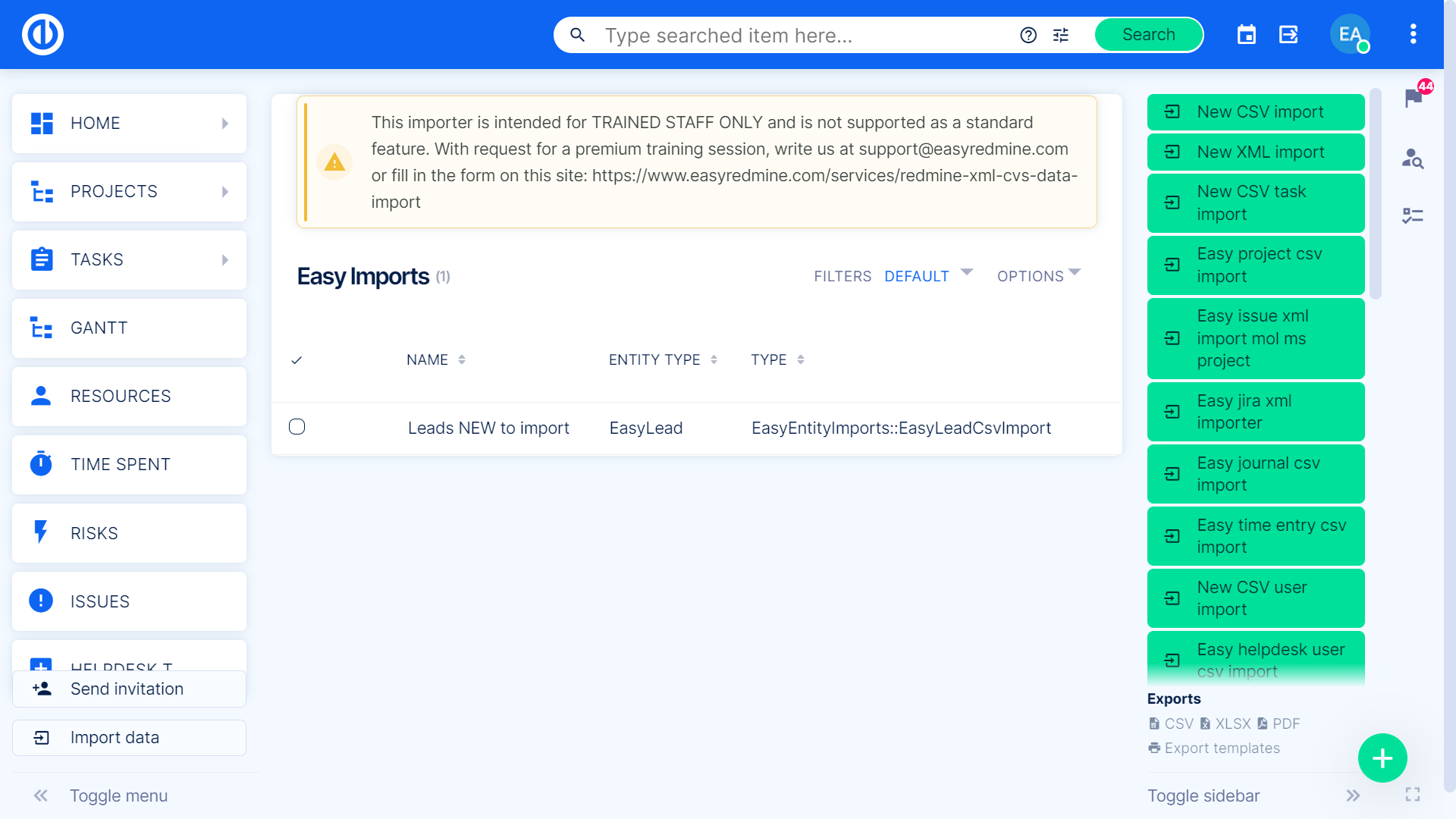 - Imporditud andmed kaardistatakse automaatselt olemasolevatele atribuutidele Easy Redmine'is