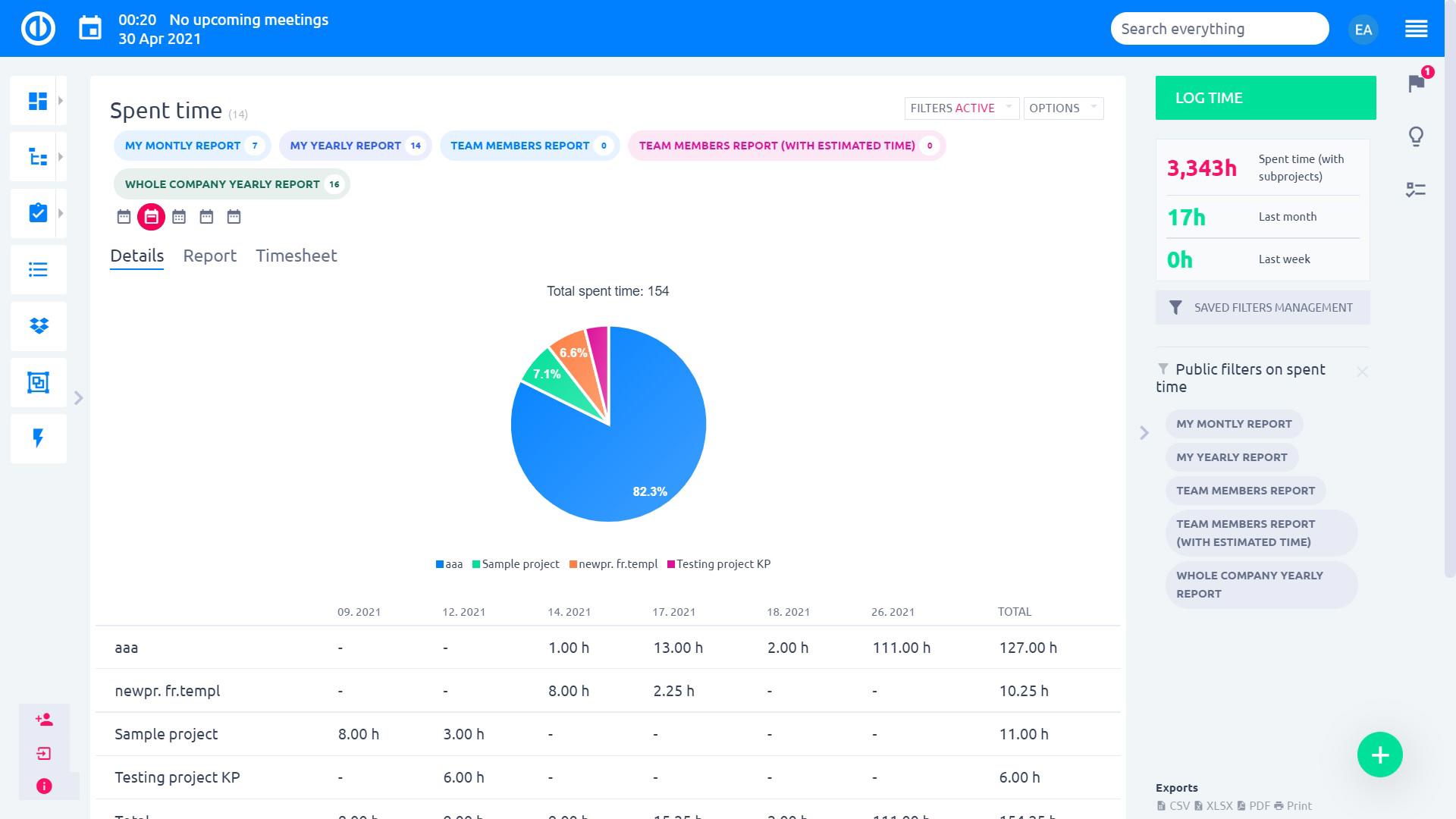 Redmine'i ajajälgimise plugin võimaldab teil luua täpseid ekspordifailid, mis võivad olla väärtuslikud ressursid teie otsuste tegemisel, kuna me kõik teame, et saate midagi parandada ainult siis, kui suudate seda mõõta/kvantifitseerida. Redmine'i ajateated ja ajatabelid on suurepärased ressursid teie arvete koostamiseks või arveldamiseks. Praegu on saadaval järgmised ekspordivormingud: CSV, XLSX, PDF.