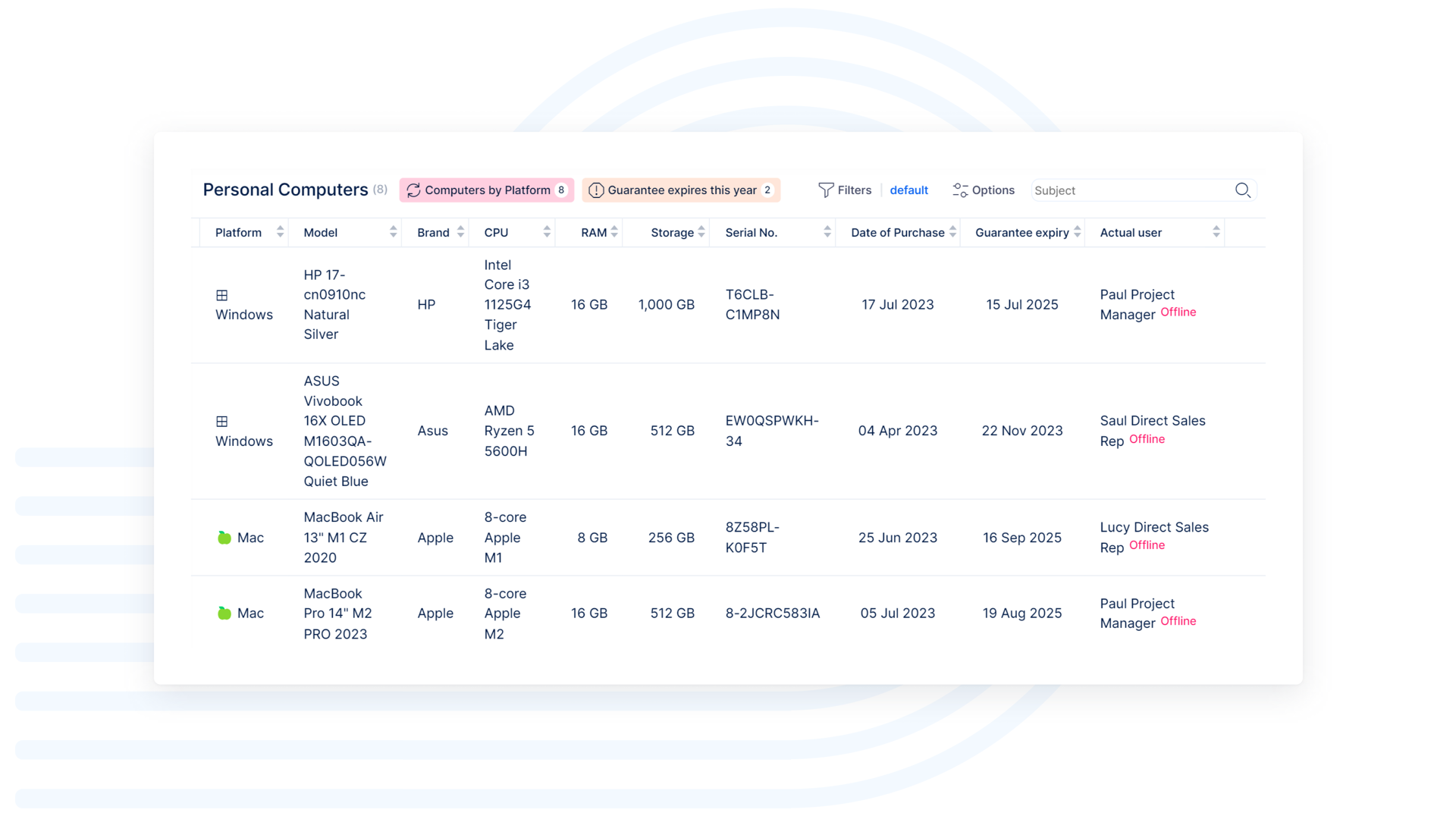 - Ettevõtte serverite ja tööarvutite haldamine, nagu näidatud meie prooviversiooni demoandmetes