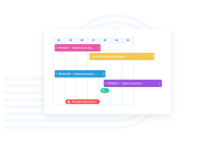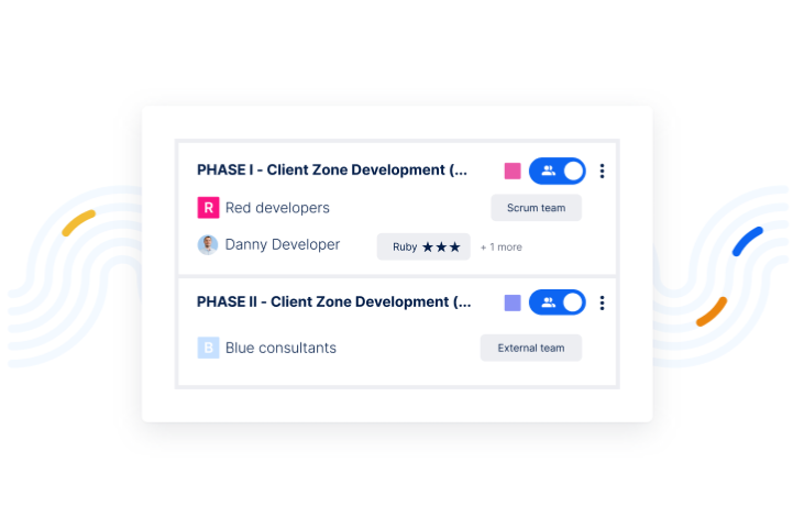 Koos Agile Resource Management-iga saate selge ülevaate oma meeskonnaliikmete hõivatusest, et saaksite tööd ühtlaselt jaotada, ennetada võimalikke töökoormuse konflikte ning tagada sujuv projektide kohaletoimetamine.