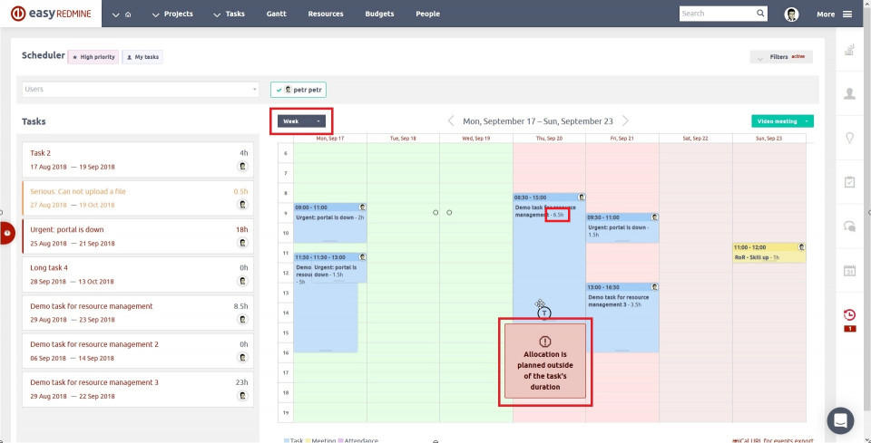 Scheduler-laajennuksen saapuessa, joka tulee osana hiljattain julkaistua suurta päivitystä Easy Redmineen, sekä projektijohtajilla että työntekijöillä on taas yksi syy juhlaan. Ei enää tarvetta avata kahta tai useampaa eri työkalua tehtävien, kokousten, osallistumisten jne. hallintaan. Ainoa mitä tarvitset, on Scheduler.