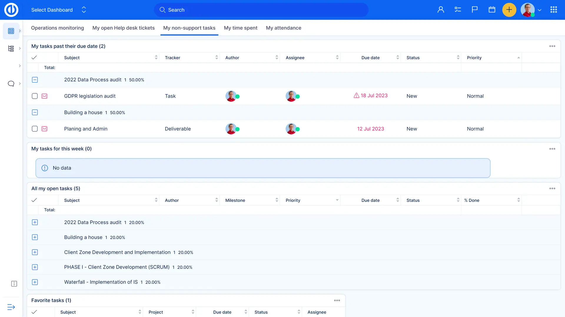 Le tableau de bord personnel prédéfini, adapté au rôle de directeur du centre d’assistance, est conçu pour fournir un aperçu rapide des performances actuelles pertinentes pour la gestion de l’assistance client.