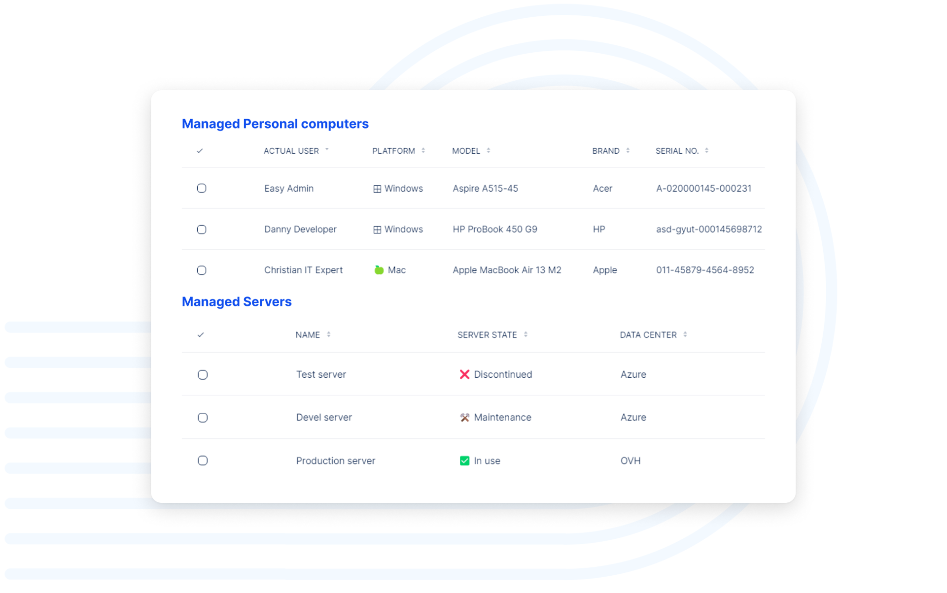 Αντίθετα από άλλους προμηθευτές, θα σας δώσουμε πάντα τη δυνατότητα να επιλέξετε ανάμεσα σε λύσεις στον χώρο του πελάτη και συννεφικές λύσεις. Και με τον όρο "στον χώρο του πελάτη", εννοούμε μια μόνιμη άδεια για τη χρήση του διακομιστή σας, και εσείς έχετε απόλυτο έλεγχο των δεδομένων σας.
