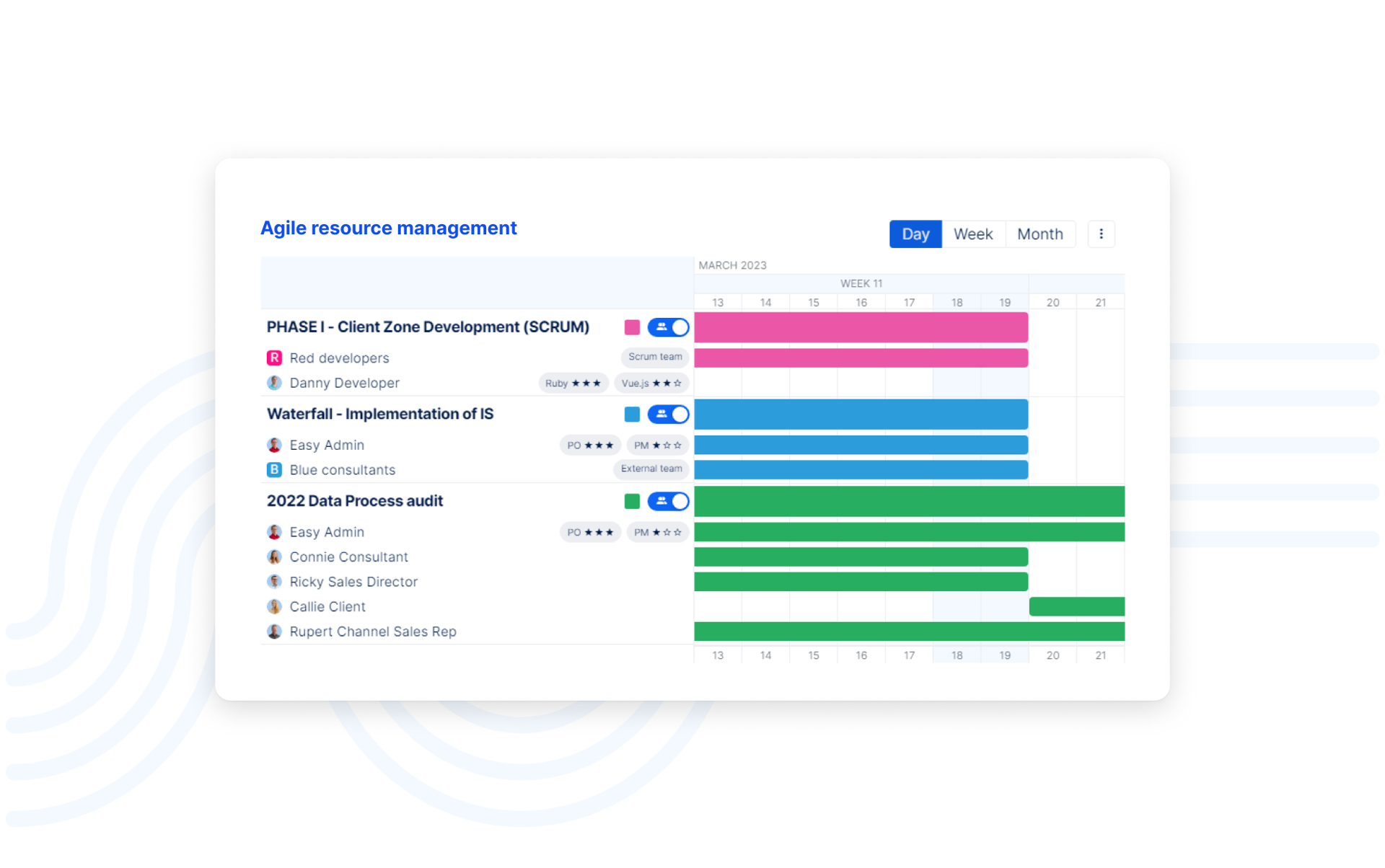Το Easy Redmine προσφέρει πραγματικά πλαισία Agile όπως Agile Διαχείριση Πόρων, Προηγμένο SCRUM/Kanban και μια πλατφόρμα διαχείρισης επιχείρησης με χαρακτηριστικά όπως WBS, γράφημα Gantt, Διαχείριση Πόρων ή Service Desk. Όλα με ένα κεντρικό σημείο υποστήριξης και υπηρεσία.