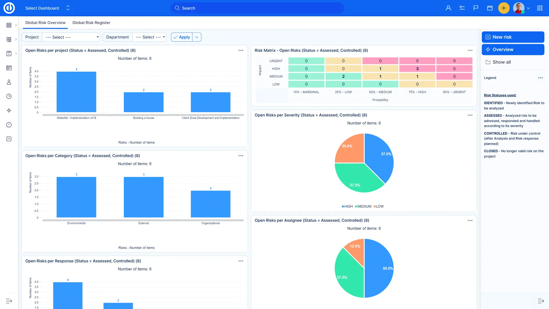 Οποιαδήποτε λίστα καταχωρήσεων (έργα, εργασίες, καταχωρήσεις χρόνου, κλπ.) μπορεί να οπτικοποιηθεί σε γράφημα ή διάγραμμα, τα οποία είναι πλήρως προσαρμόσιμα. Με μόνο μερικά κλικ χρησιμοποιώντας πίτα, γράφημα μπάρας ή γραμμής μπορείτε να προετοιμάσετε έναν αναφορά για την απόδοση του έργου σας και να δείξετε τι χρειάζεται να βελτιωθεί.