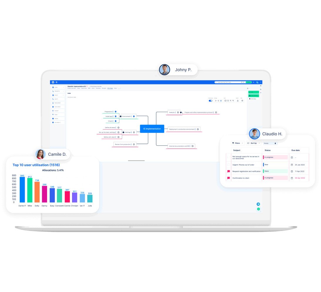 Az Easy Redmine segítségével ügyfelei hozzáférhetnek olyan eszközökhöz, mint a WBS, az erőforrás- és feladatkezelés, az időkövetés, a Kanban és a Megtermelt érték menedzsment - személyes használatra és csapatok számára is elérhető. Mindezek egy megoldásba integrálódnak!