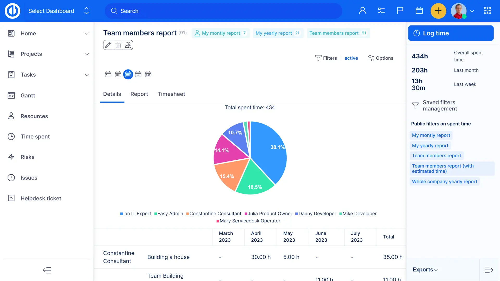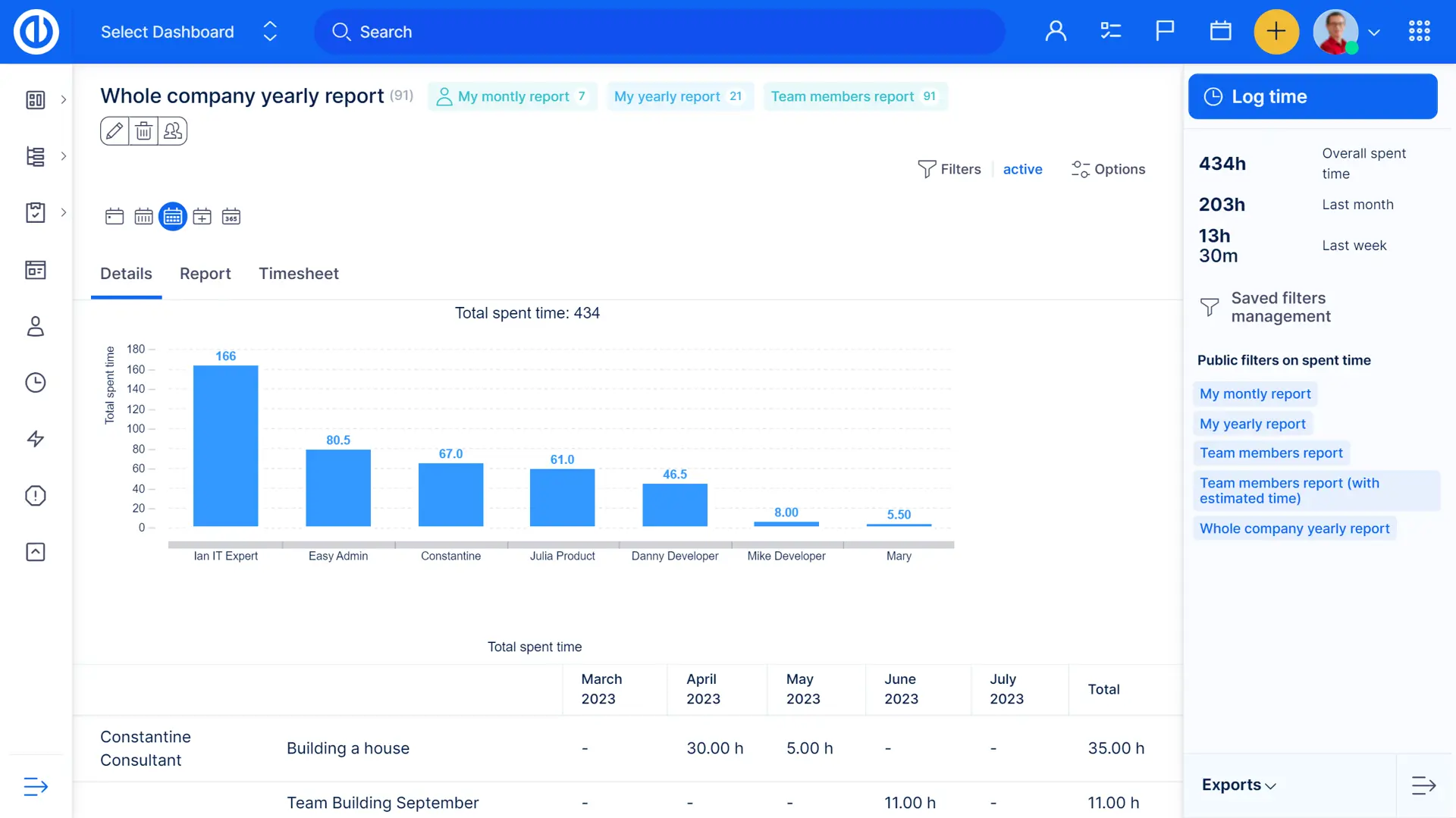 - Mengukur waktu yang dihabiskan per proyek/tugas, penggunaan waktu yang dapat ditagih, penggunaan waktu dukungan teknis, dll.