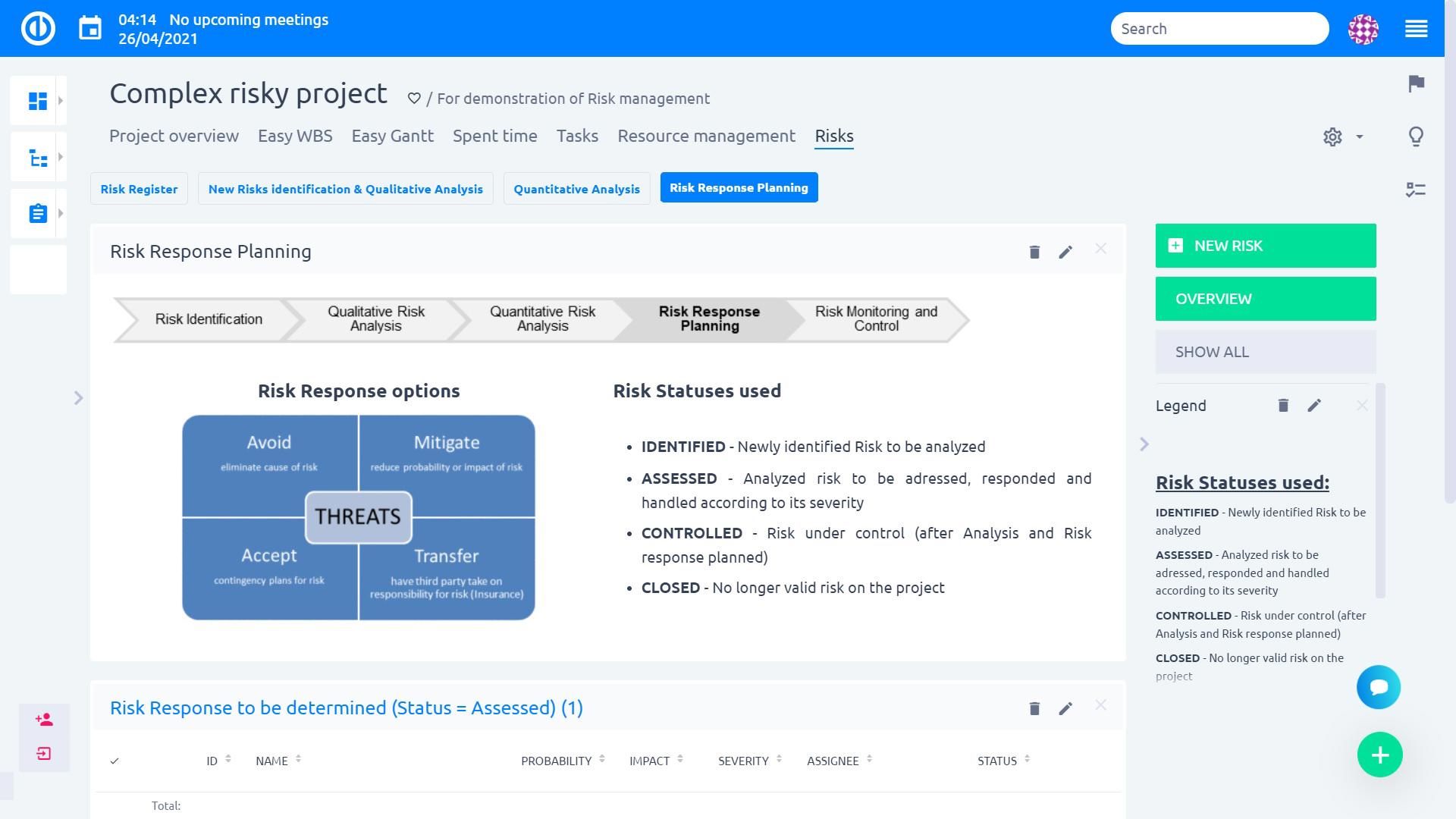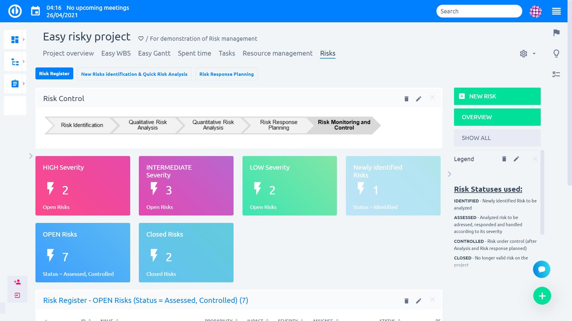 ניהול סיכונים הוא תהליך חיוני לכל פרויקט המנוהל בצורה יעילה. לכן, תוסף Easy Redmine החדש מביא את כל התכונות הנדרשות לזיהוי, הערכה, מעקב ונימוק של סיכונים.