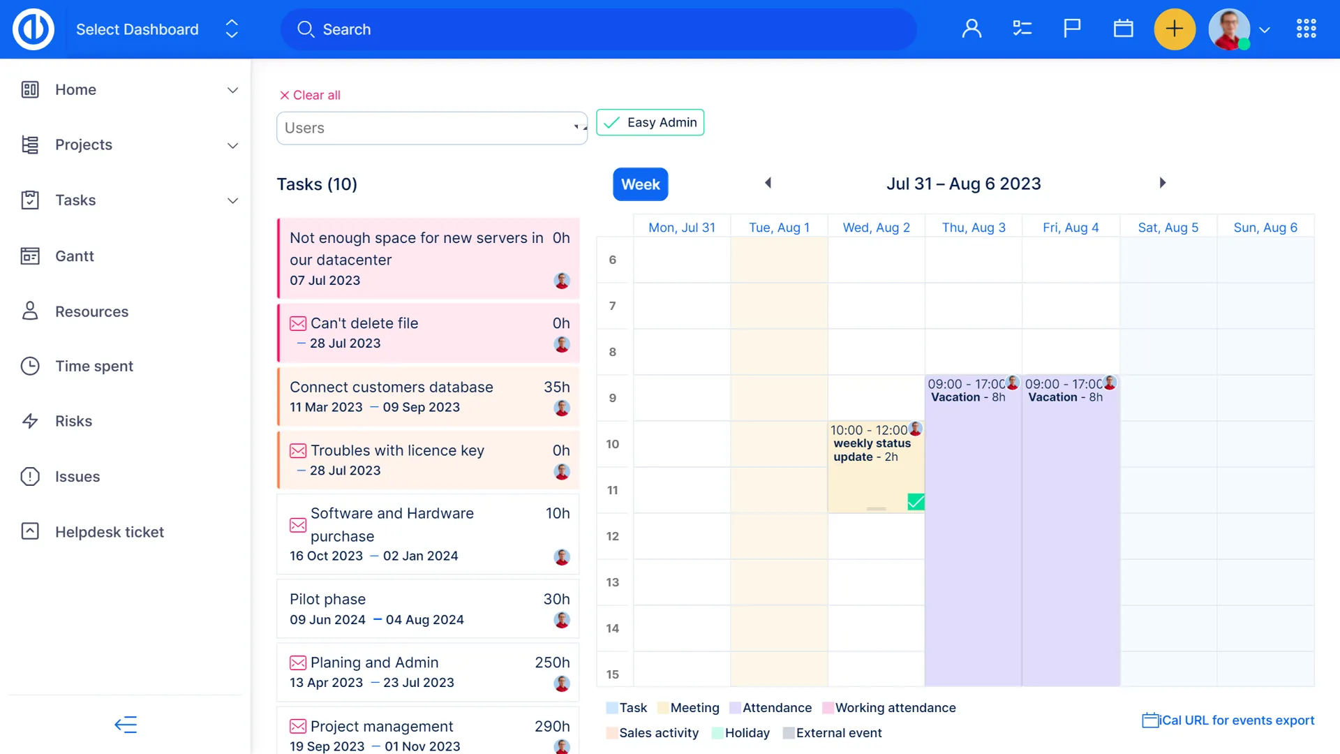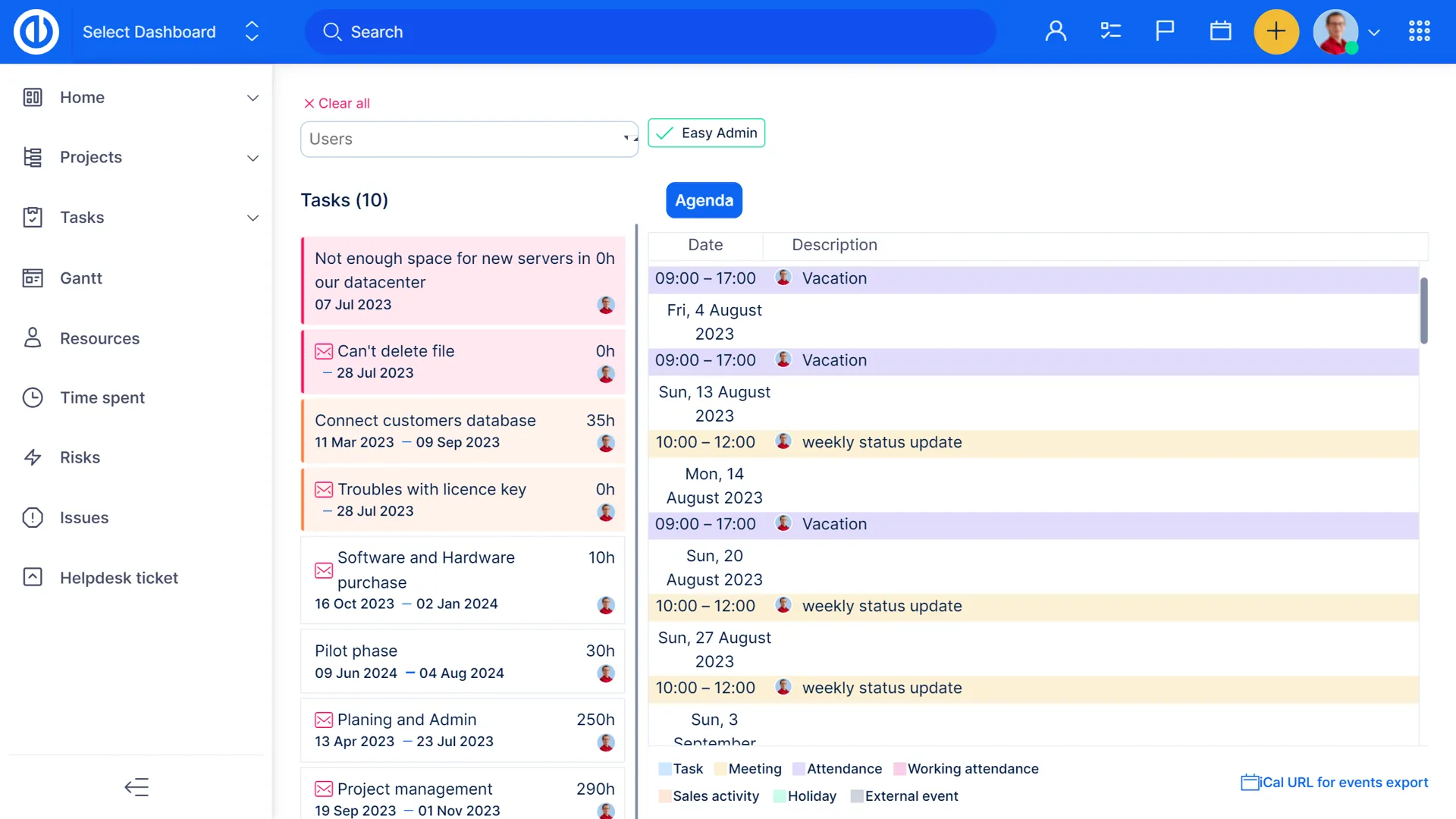 캘린더를 사용하면 캘린더에서 직접 작업을 계획하고 할당할 수 있습니다. 사용자가 회의, 비즈니스 활동 또는 기타 할당된 작업과 같은 다른 예약된 이벤트로 바쁜 때를 즉시 알 수 있습니다. 또한 사용자의 출석을 보여주기 때문에 부재 중에는 과제를 계획할 수 없습니다.