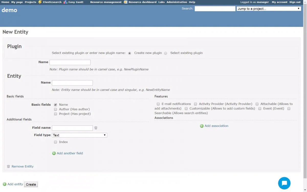 Redmine용 독립형 플러그인으로 무료로 제공합니다. 사용자가 빠르고 맞는 툴을 사용하여 새로운 플러그인과 독립체를 구성할 수 있도록 하는 것이 목적입니다.