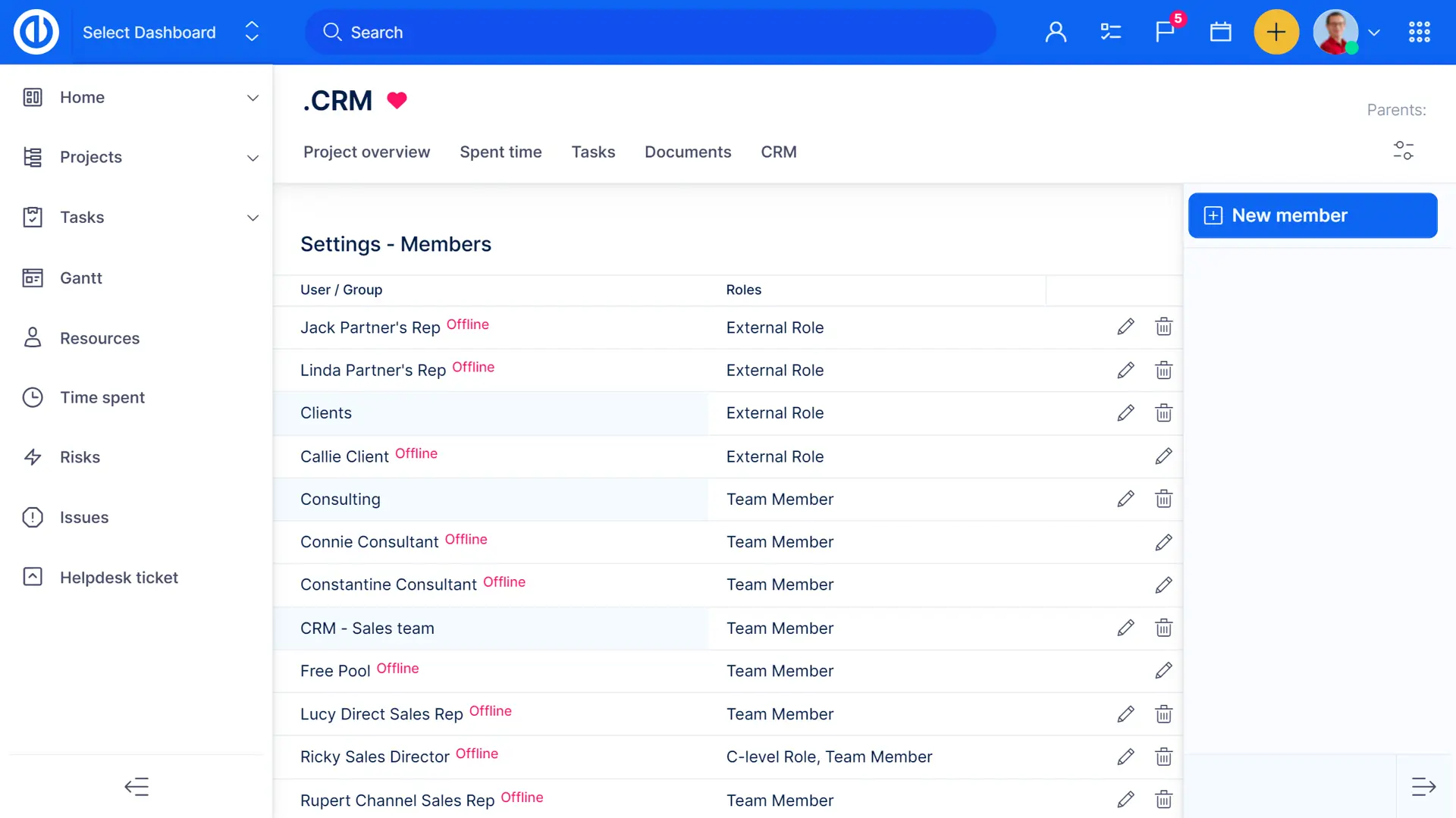 조직내 가장 일반적이 역할로부터 선택