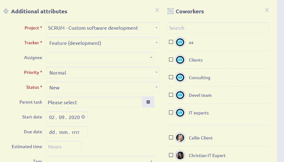 Search and immediately add coworkers to the new task at the very same time you create it. Just start typing your coworker's name into the search bar and you will easily find and add the ones you need.