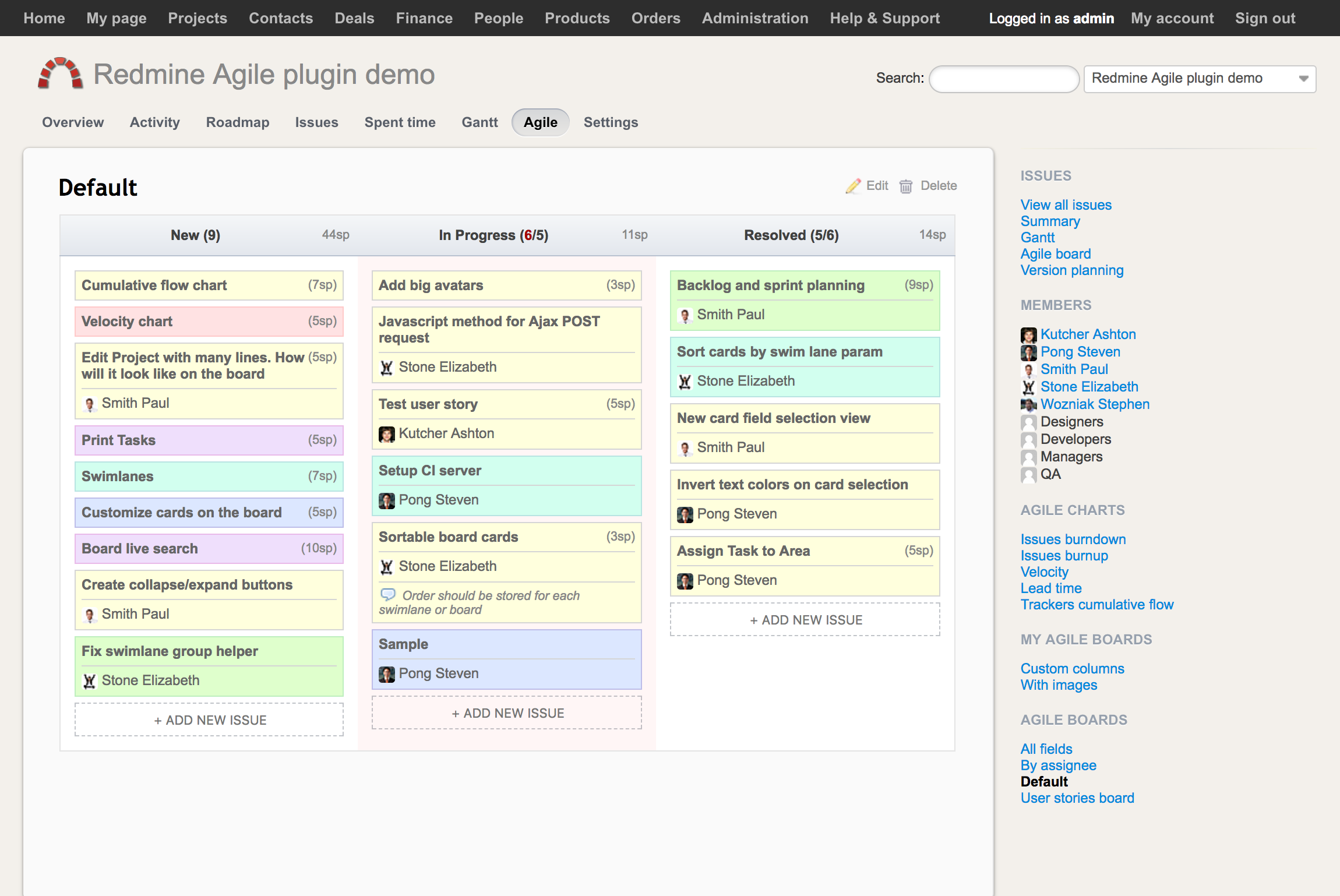 The only downside to this Redmine theme is that if you activate a significant number of modules for your project, the top menu does not auto-fit to align with your screen.