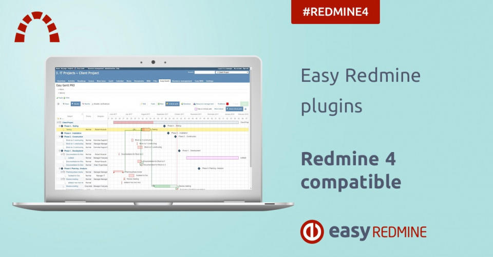 As of April 2019, Redmine plugins and tools developed by Easy are also available for Redmine 4 project management platform. Redmine version 4 released on December 9 brings significant changes to the code. A large portion of updates is related to the performance of the system and its functionality. In total, it brings more than 200 changes.