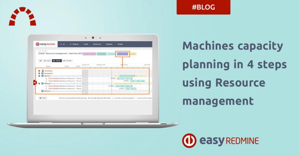 Easy Redmine Resource management biedt eenvoudige en configureerbare capaciteitsplanning voor machines. Waarbij machines worden gedefinieerd als gebruikersgroepen met een specifieke productiecapaciteit per dag en trackers worden gebruikt om machinetaken te definiëren.