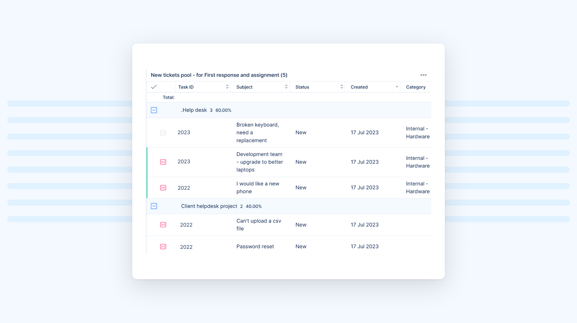Het beheer en de toewijzing van tickets is nog nooit zo eenvoudig geweest! Met het nieuwe HelpDesk-dashboard kunt u uw tickets en beschikbare middelen efficiënt beheren. Er is geen noodzaak om elk ticket te openen en een update te maken voor de toewijzing van verantwoordelijkheden. U kunt gewoon uw tickets bekijken in de ticketpool die wordt geleverd door het HelpDesk-dashboard om de benodigde middelen voor het gegeven probleem te identificeren.