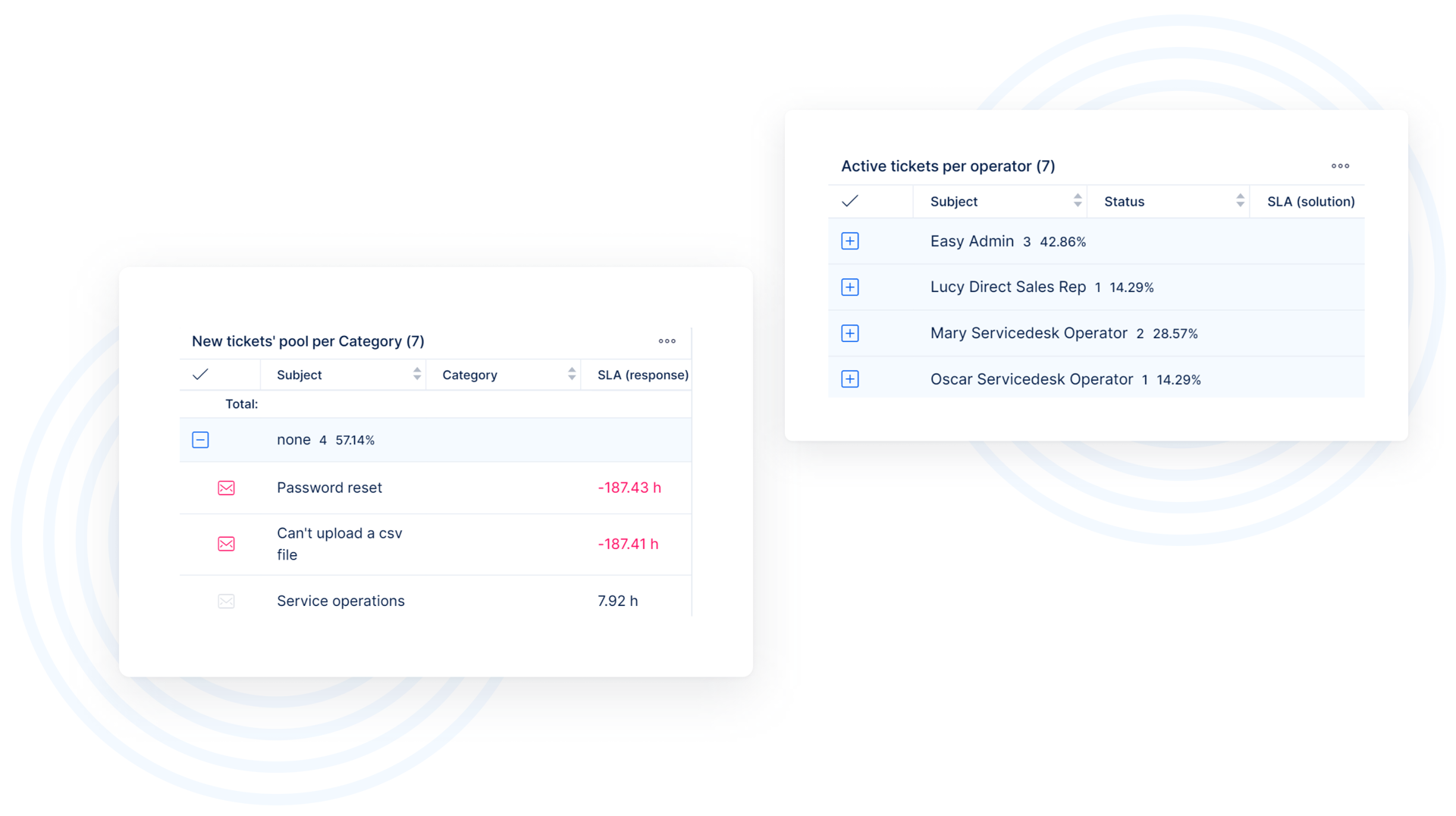 Wilt u een duidelijk overzicht hebben van uw ondersteuningsklanten? De functie HelpDesk-project kan u daarbij helpen! Het projectoverzicht stelt u in staat om het aantal contracturen volgens SLA in te stellen en te observeren, het aantal gewerkte uren en de resterende uren. Daarnaast biedt het kleurcodering voor elk project, wat u een mooie visuele weergave geeft van de huidige statussen van projecten. Bovendien kunt u uw projecten gemakkelijk categoriseren, bijvoorbeeld op basis van de belangrijkheid van een bepaalde klant of het niveau van de geboden diensten. Natuurlijk is er binnen elk specifiek project een eigen overzicht dat meer in detail gaat - ticketrapporten, SLA-evenementen, timesheets, enz.