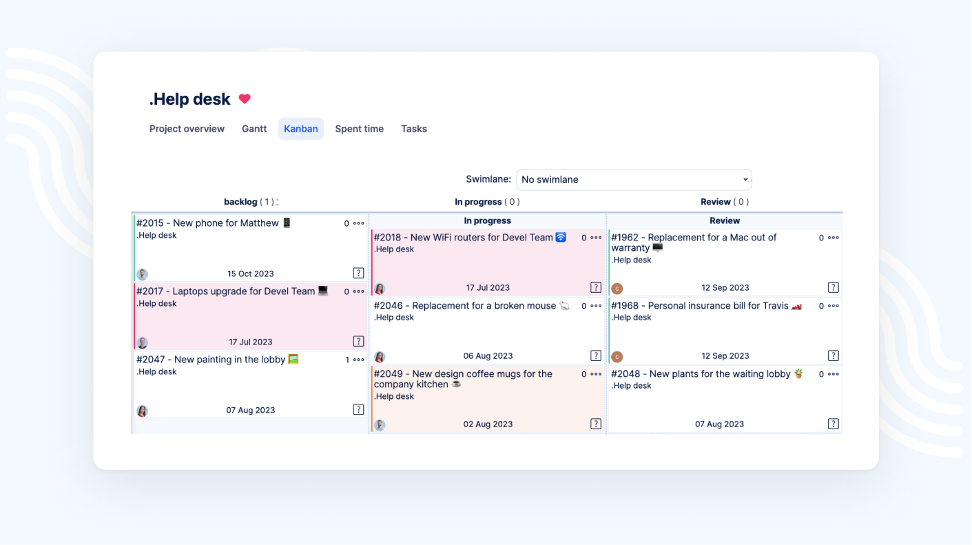 - Tilpasset Kanban - hjelper deg med å håndtere prosesser, oppdage flaskehalser og løse dem enkelt.