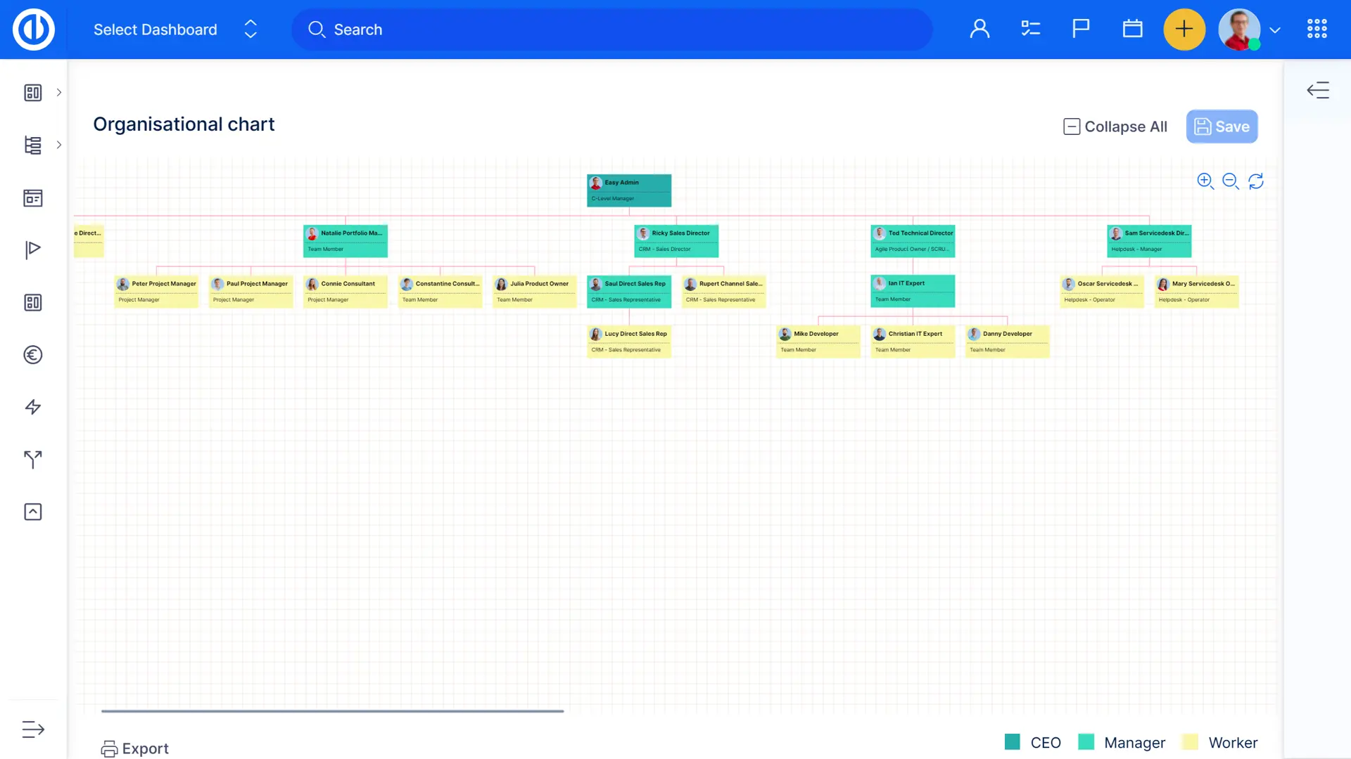 Ein tydeleg oversikt over organisasjonsstrukturen til selskapet