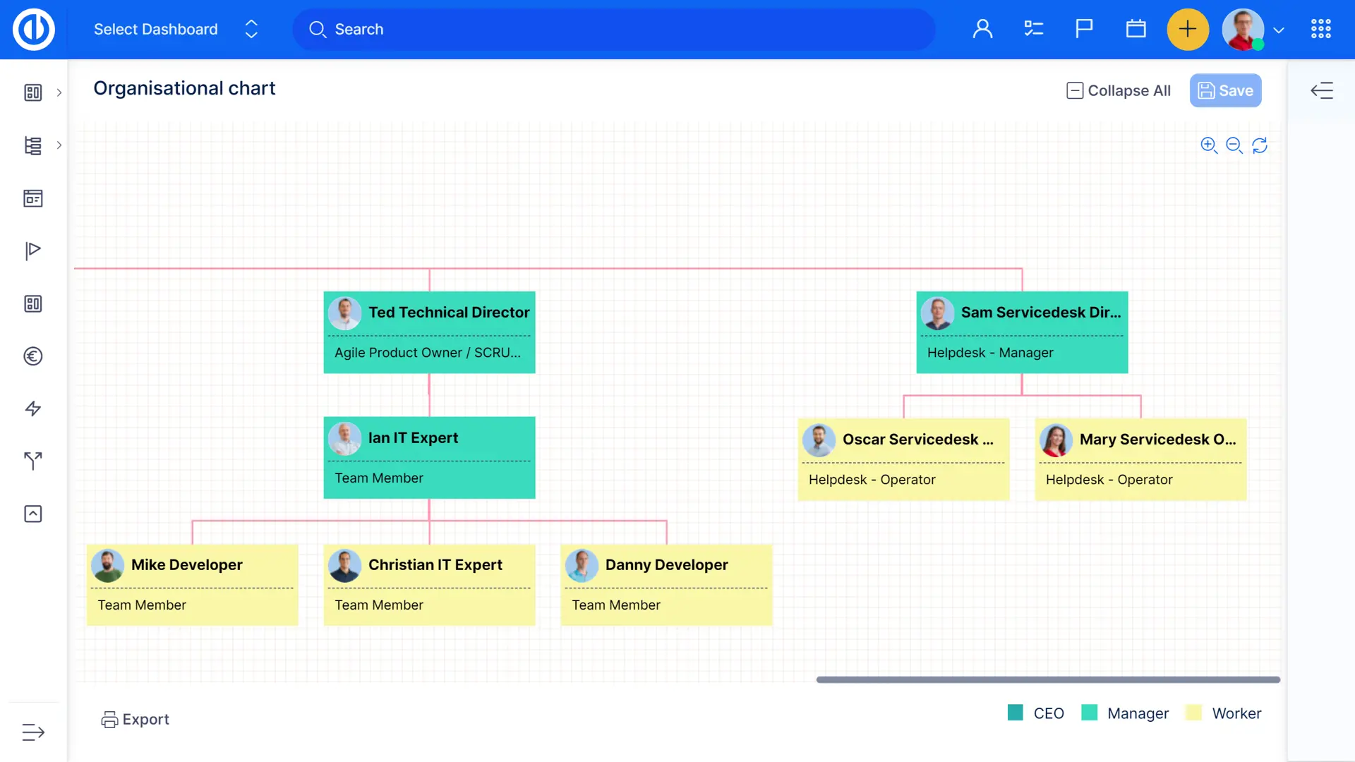 Organisasjonsstruktur er en form for et trehierarki der hver bruker i organisasjonen, bortsett fra den øverste, er underordnet en annen bruker. Denne ordningen hjelper til med å definere hvordan aktiviteter som oppgaveallokering, koordinering og tilsyn standardmessig rettes mot oppnåelsen av organisatoriske mål. Det bestemmer også hvem som er kvalifisert til å godkjenne ferieforespørsler sendt inn av brukere.