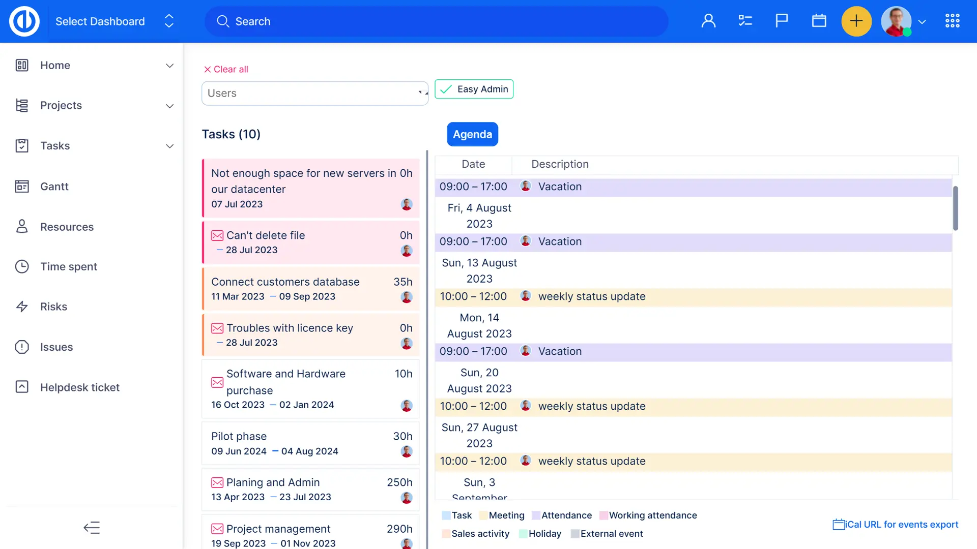 - Dziennik wszystkich zaplanowanych działań (Widok agendy)