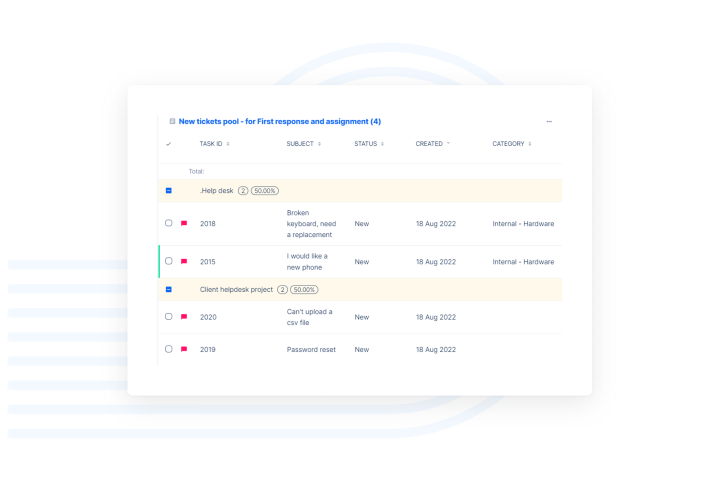 Jako menadżer Help Desku, rozumiesz, jak ważne jest zapewnienie szybkiej i efektywnej pomocy Twoim klientom. Nasze zintegrowane oprogramowanie do zarządzania projektami jest specjalnie zaprojektowane, aby upraszczać operacje Help Desku, usprawniać przepływy pracy i zwiększać produktywność zespołu.