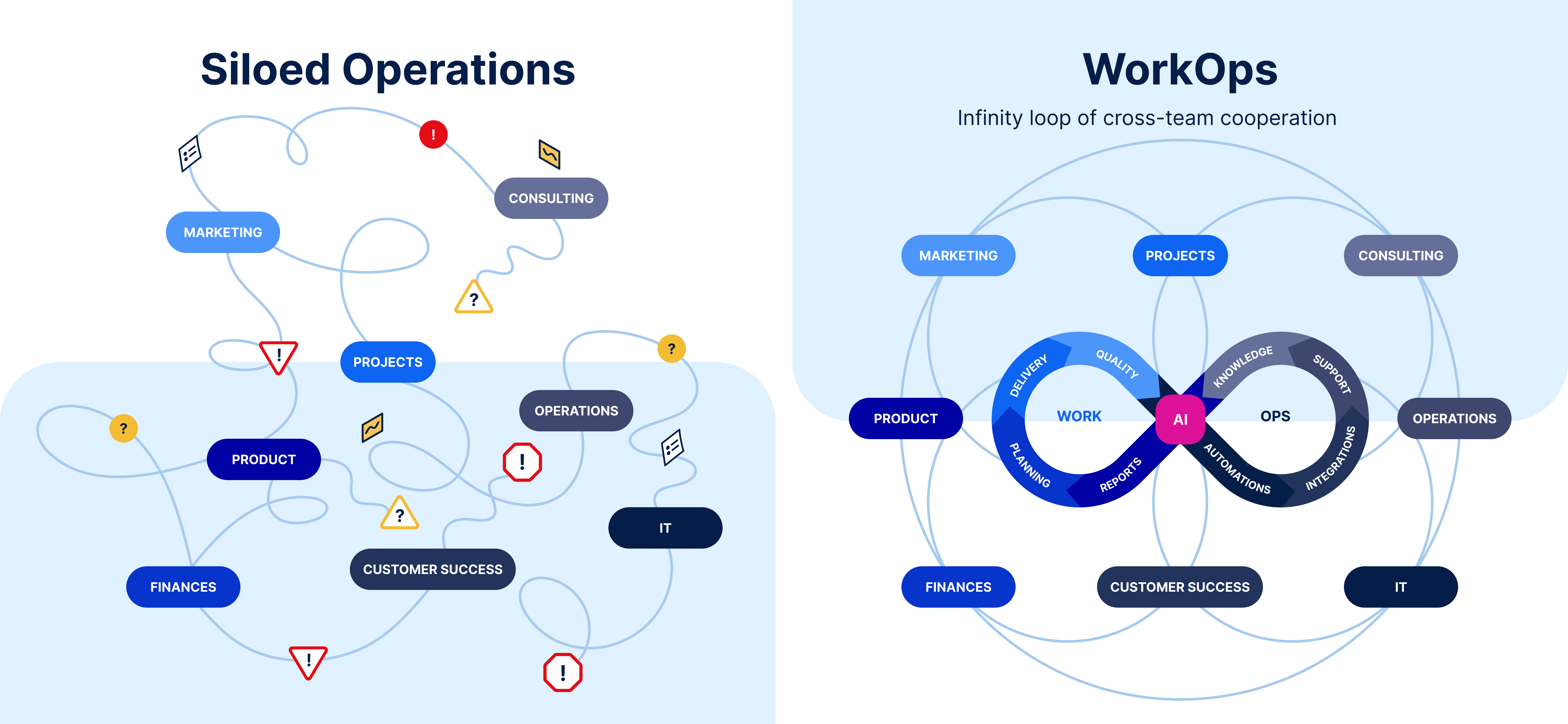 WorkOps is an operating model that connects planning, execution, operations, and learning into one continuous loop — across teams, systems, and data.