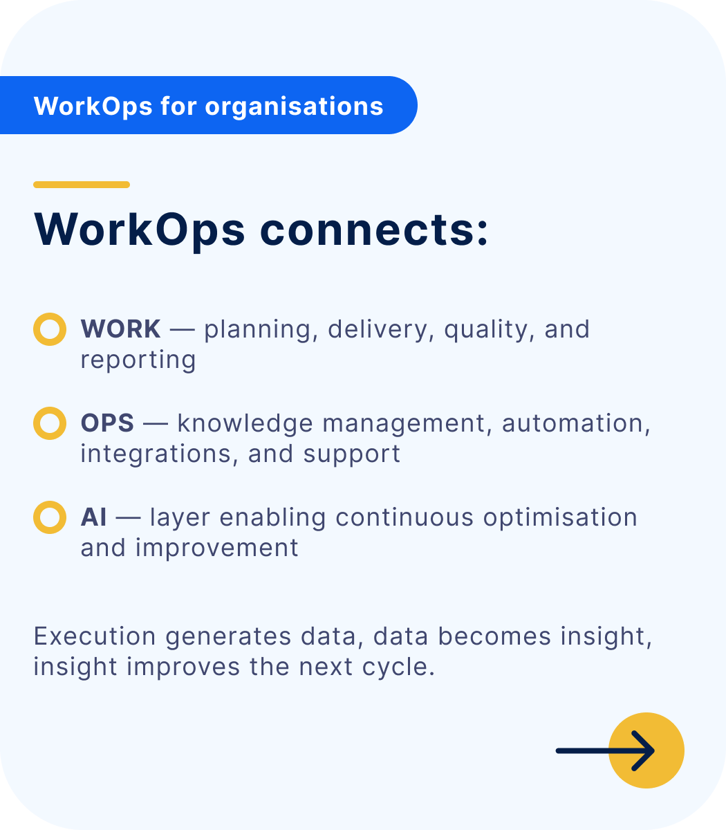 WorkOps defines how work runs in modern organisations — where teams use many tools, operations are cross-functional, and change is constant.