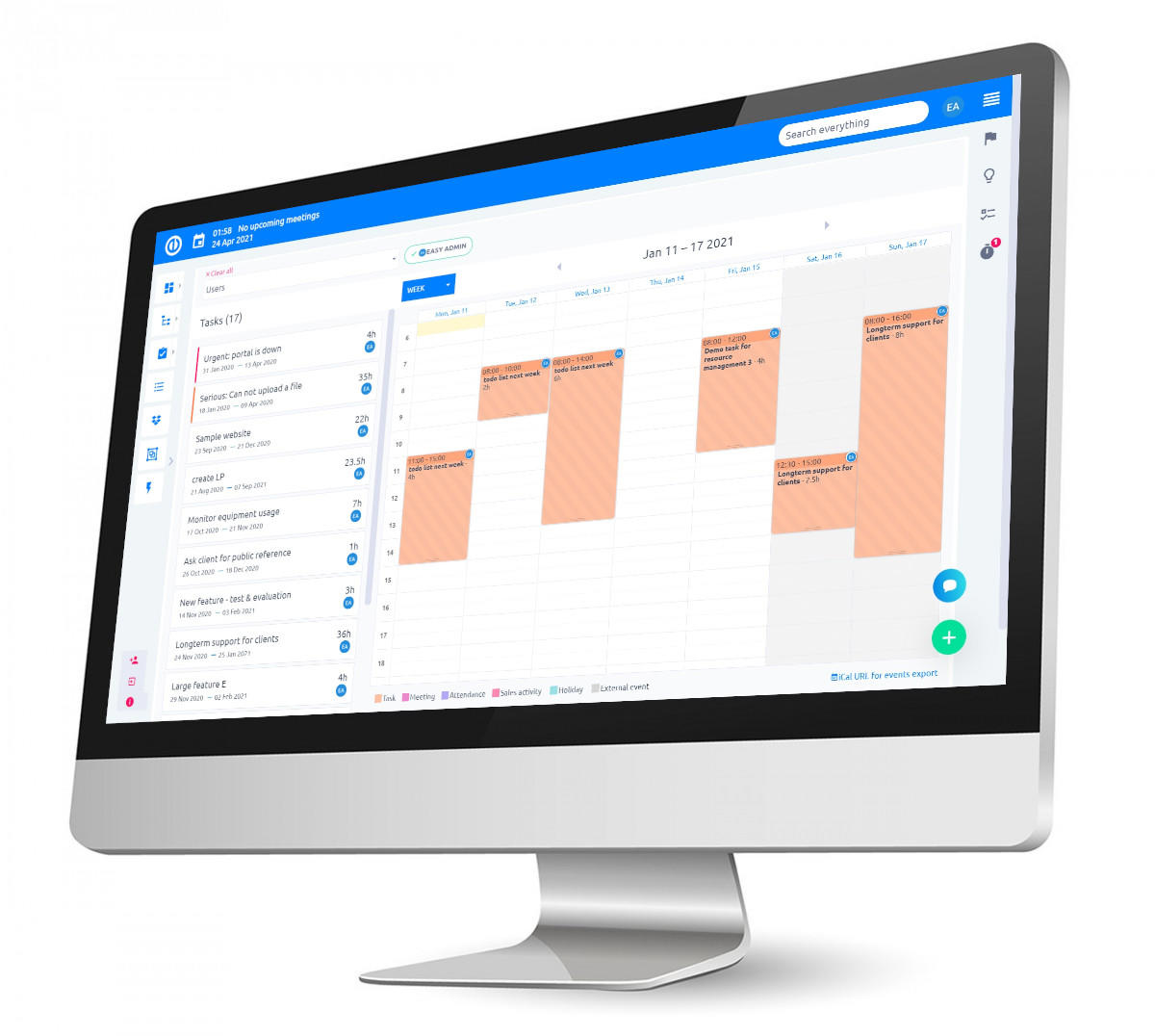 All-in-one calendar for tasks, meetings, attendance & CRM