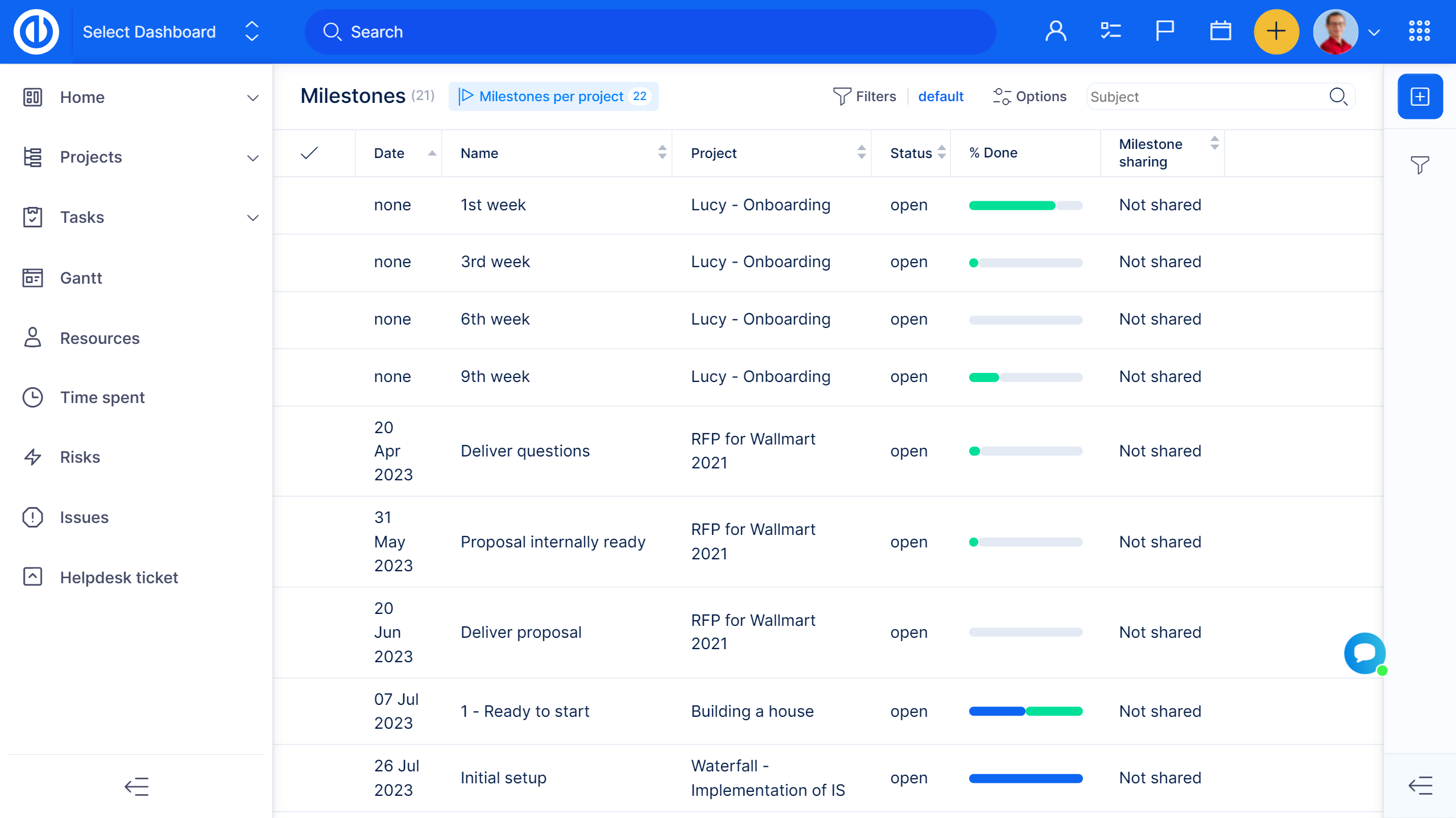 - Kontrollera om projekt är i tid med sina milstolpar