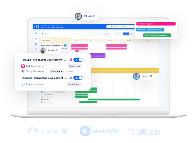 Easy Redmine är redo att direkt ersätta Jira-programvara, Service Desk, Confluence och BitBucket.