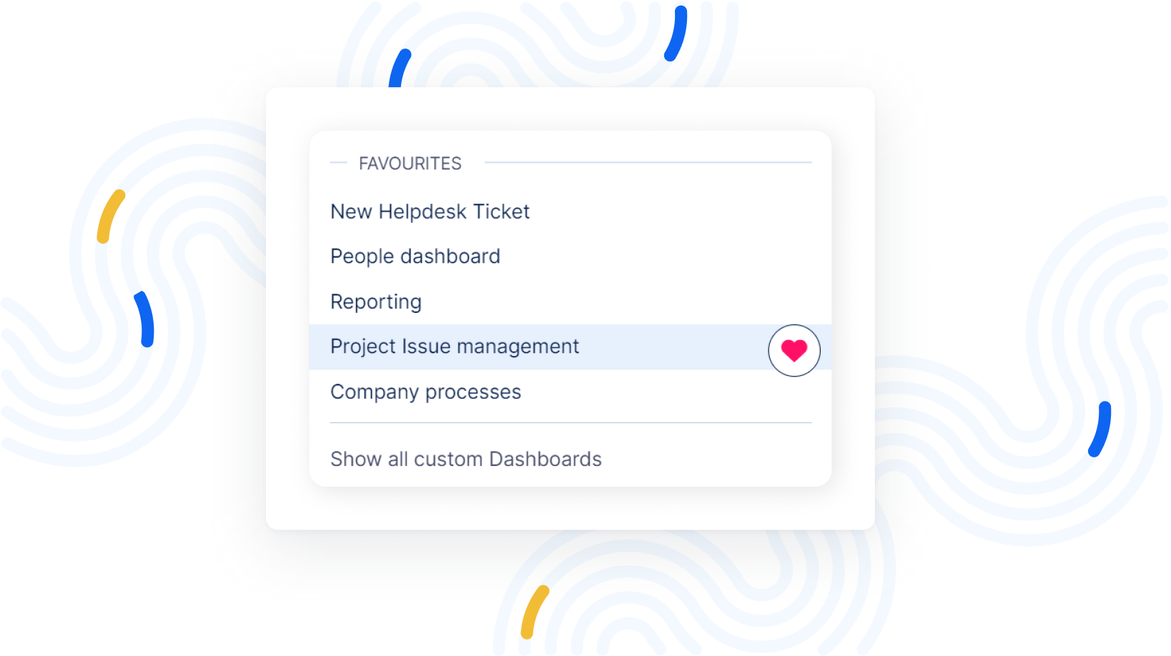 ทำให้การเข้าถึงแดชบอร์ดที่กำหนดเองง่ายขึ้น เพียงแค่กระโดดไปยังแดชบอร์ดเหล่านั้น ใส่ลงในรายการโปรดของคุณและทำให้เข้าถึงได้ทันที สำรวจพลังของแดชบอร์ดที่กำหนดเองที่สามารถเข้าถึงได้ ใน Easy Redmine