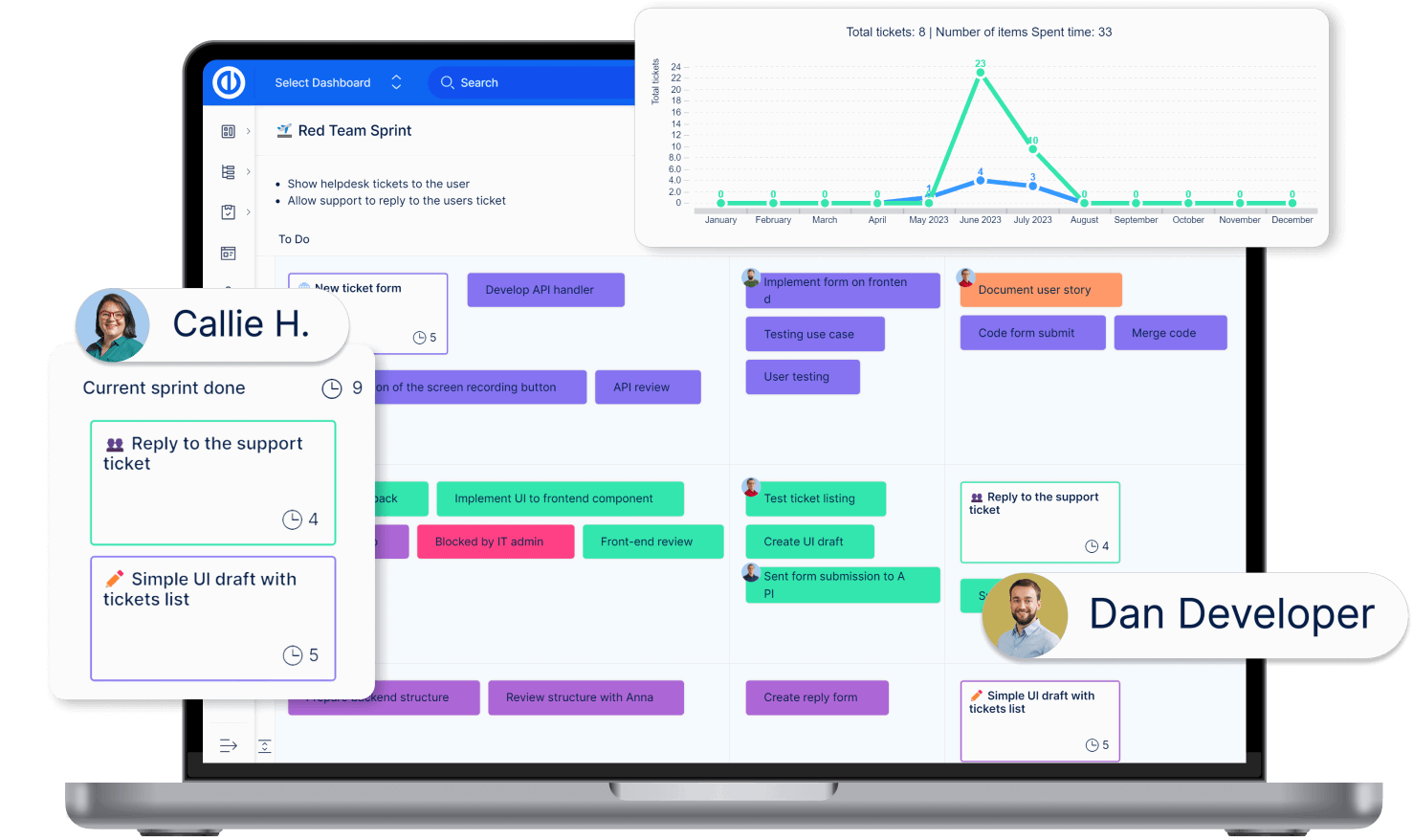 กระดาน Scrum ใหม่ของเราปฏิบัติตามหลักการของวิธี Scrum ดังนั้นจึงสนับสนุนการทำงานร่วมกันของทีมและความรับผิดชอบได้ดีขึ้น เราใส่ใจเพิ่มเติมในประสบการณ์ผู้ใช้ที่ใช้งานได้อย่างสะดวกสบาย โดยการใช้กระดาน Scrum เหมือนกับการทำงานร่วมกันในชีวิตจริงเสมือนว่าทีมของคุณอยู่ในพื้นที่ที่ใช้ร่วมกัน โดยใช้ประโยชน์และสิ่งที่มีอยู่ให้เต็มที่