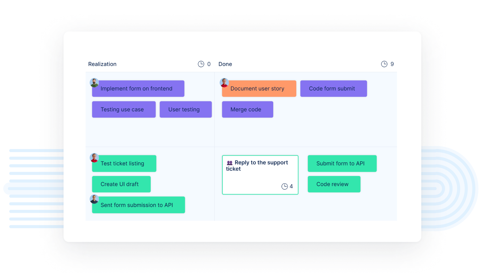 การแก้ไขแบบเรียลไทม์ช่วยให้สมาชิกในทีมเห็นการอัปเดตของกันและกันทันที โดยทำให้การประสานงานและความโปร่งใสเพิ่มขึ้น การสร้างการ์ดอย่างสมเหตุสมผลและการกำหนดลำดับความสำคัญเป็นเรื่องง่าย การทำซ้ำของการ์ดก็สะดวก ทำให้คุณไม่ต้องกรอกแบบฟอร์มเดียวกันซ้ำๆ บอร์ดของเราเหมาะสำหรับ LeSS (Large-Scale Scrum) ที่รองรับการจัดการงานของทีมหลายทีมพร้อมกัน