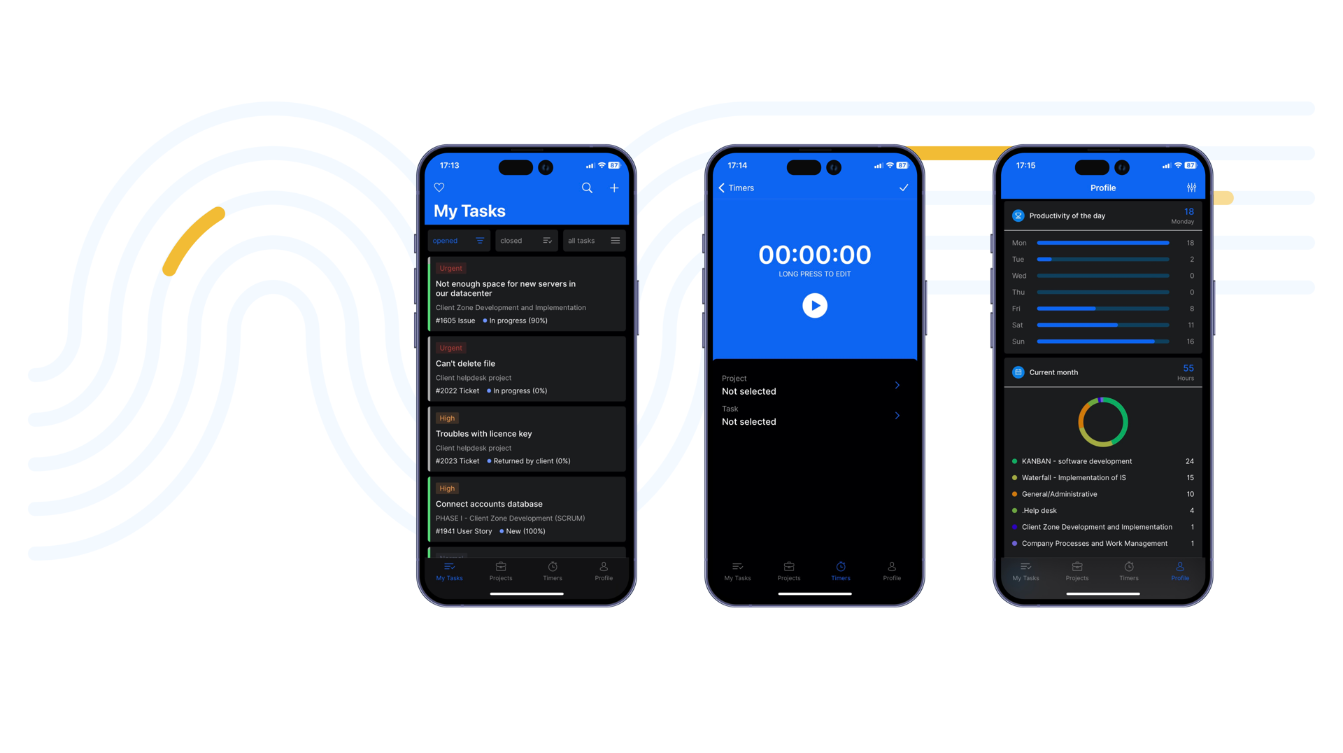 Yeni Easy Redmine mobil uygulamasıyla, nerede olursanız olun tüm projelerinizi kontrol altında tutabilirsiniz. Yeni fikirler geldikçe hareket halindeyken kolayca yeni görevler oluşturabilir, işleri ilerletmek için hızlı yorumlar gönderebilir, görevlerinizi yönetebilir veya bireysel görevlere ve projelere zaman takip edebilirsiniz.