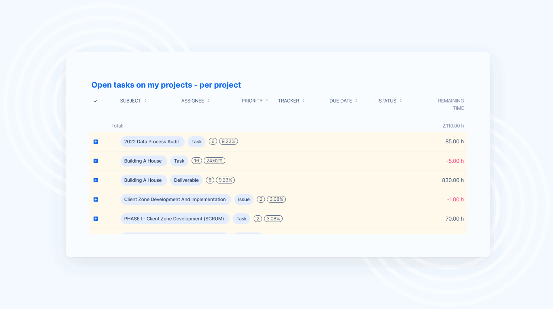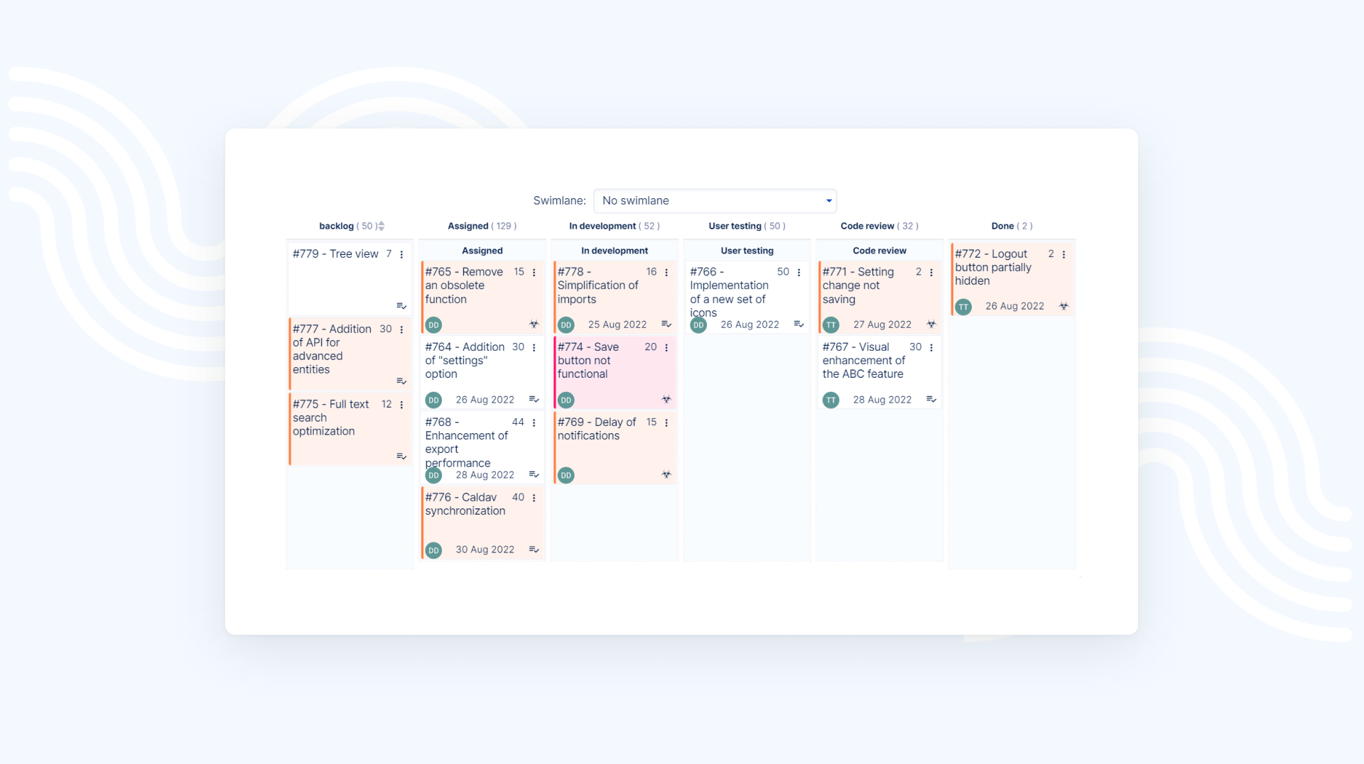 Використовуйте свімлайни для групування завдань за користувачем. Ця функція дає вам миттєвий огляд того, хто призначений на певне завдання. Тому ви зможете швидше керувати конкретними завданнями, ніж раніше, і покращити свій розвиток Redmine Agile.