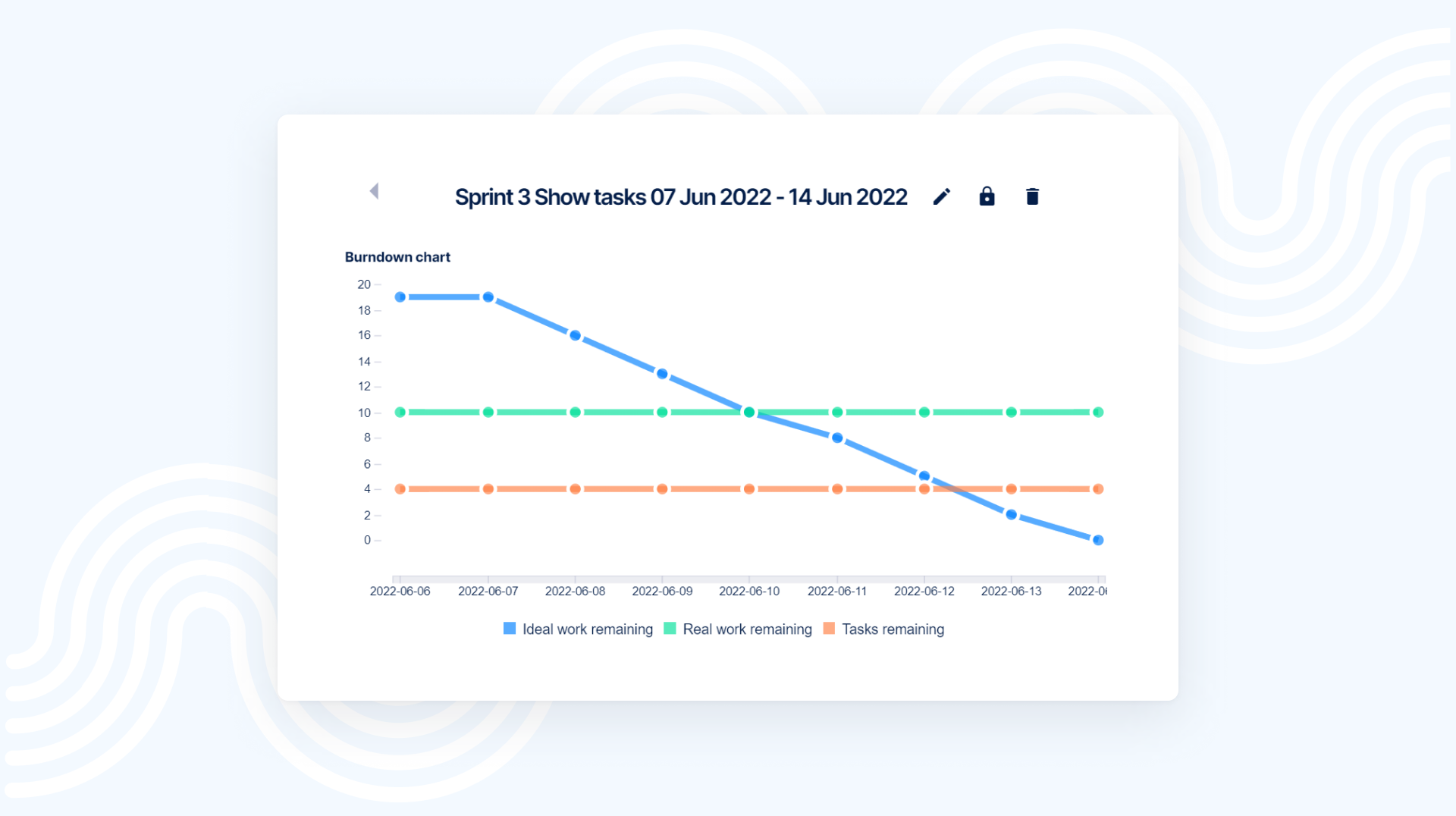 Використовуйте діаграму спалювання, щоб отримати графічну візуалізацію вашого прогресу у ваших проектах. Діаграма спалювання надасть вам швидкий та зрозумілий огляд кількості роботи, що залишилася порівняно з кількістю часу, що залишився для її завершення.