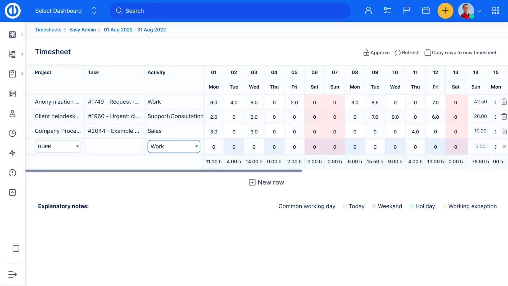 - Ролі та дозволи - працівники можуть створювати таблиці часу, менеджери можуть затверджувати