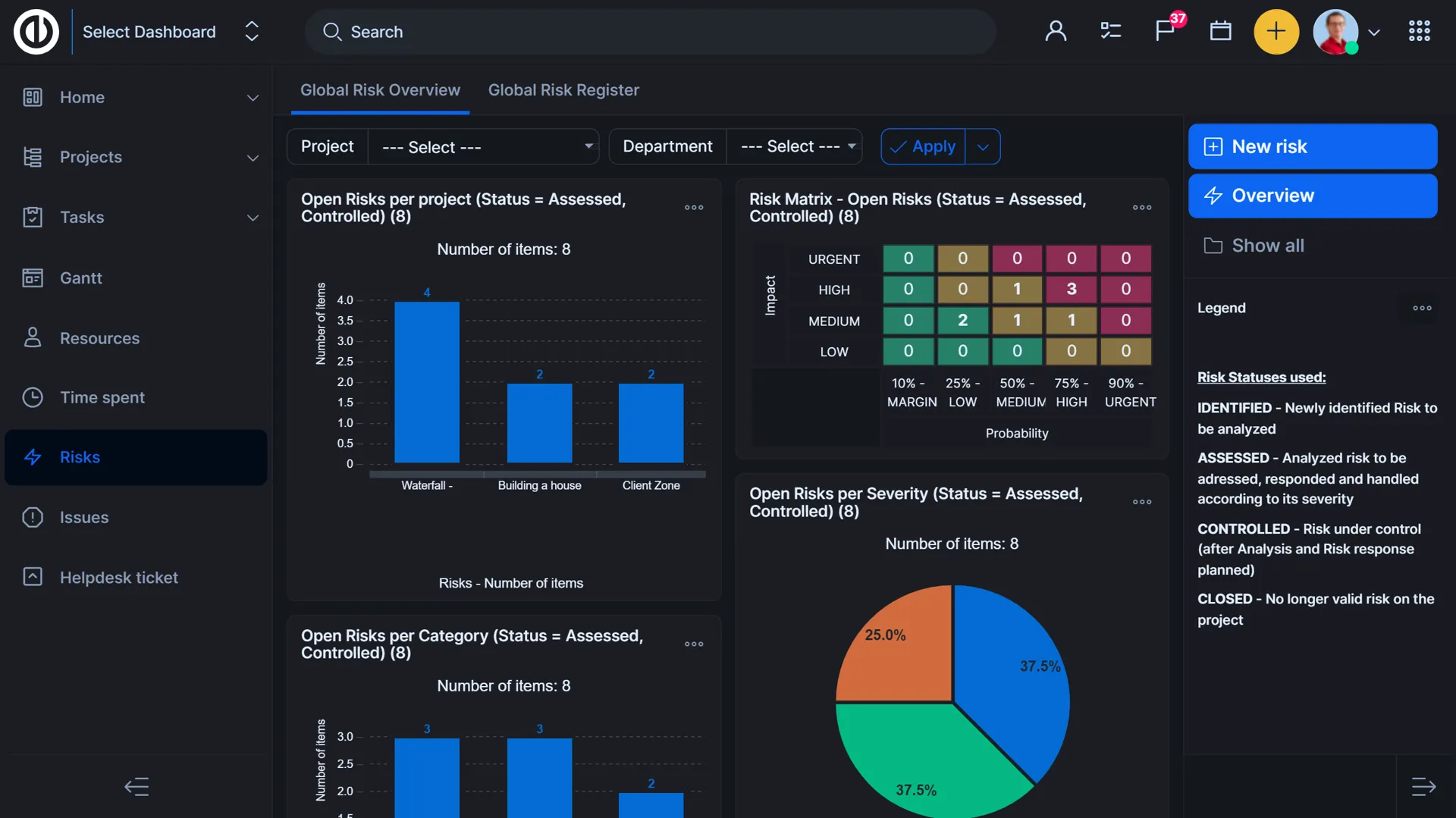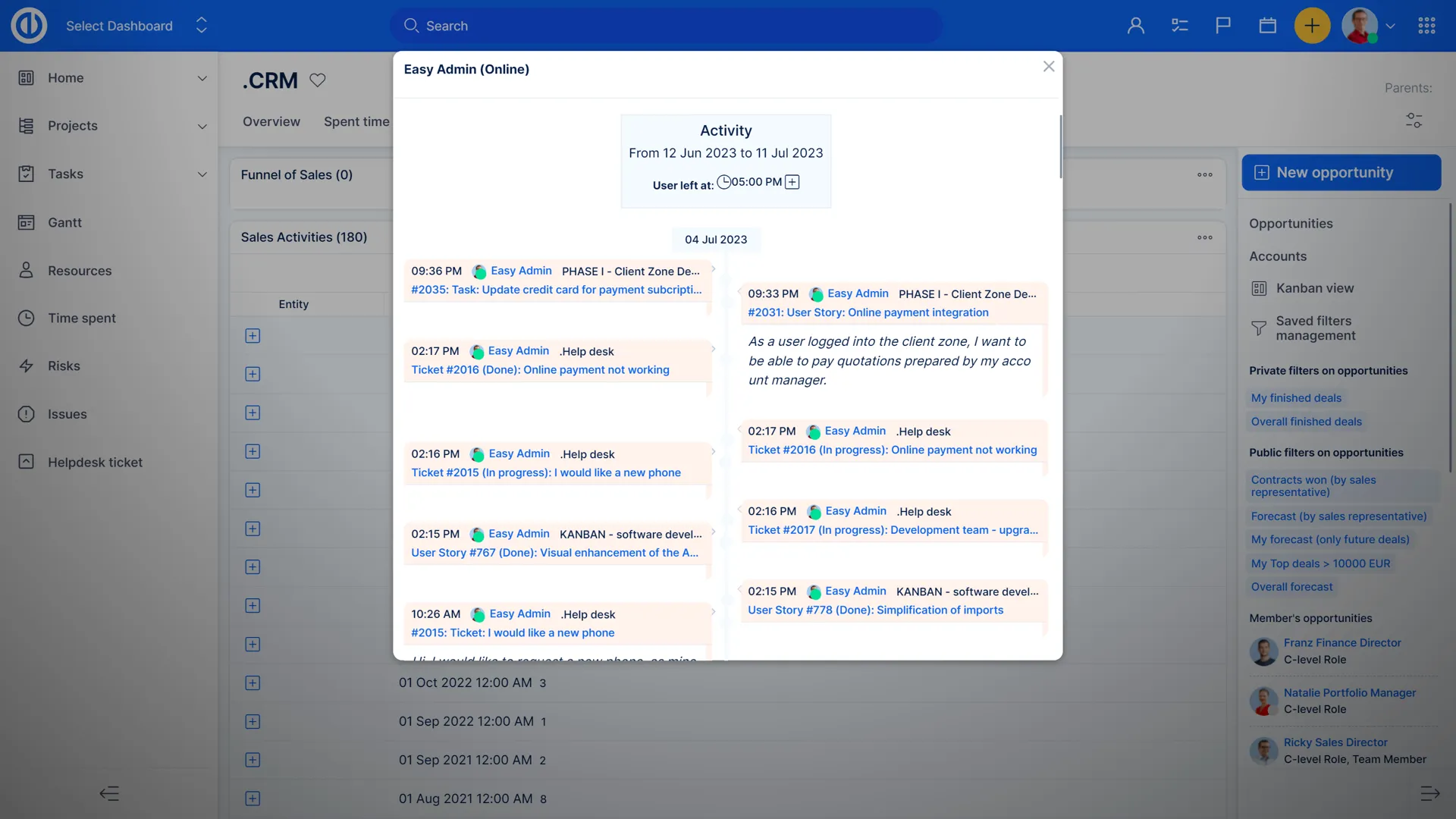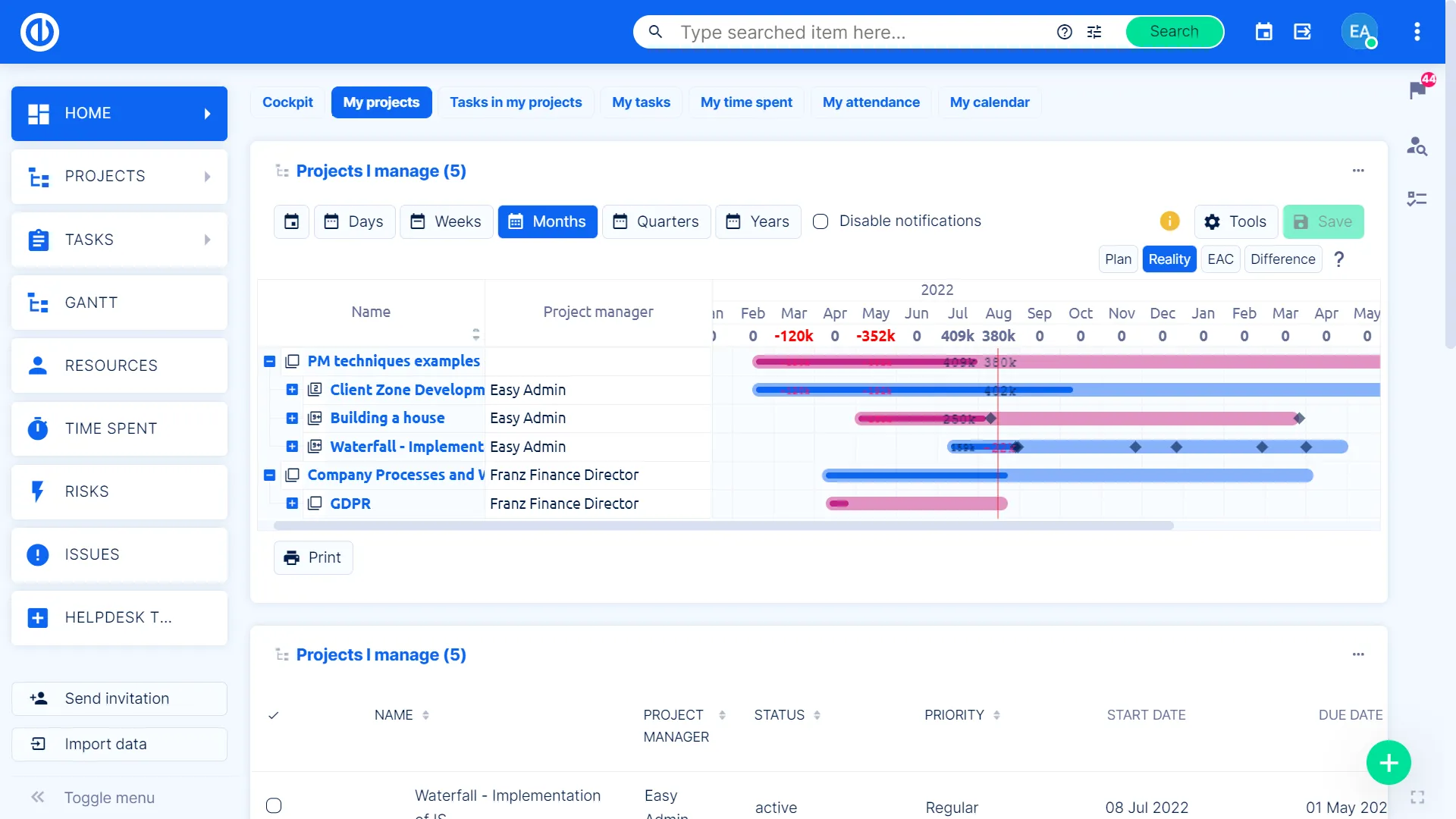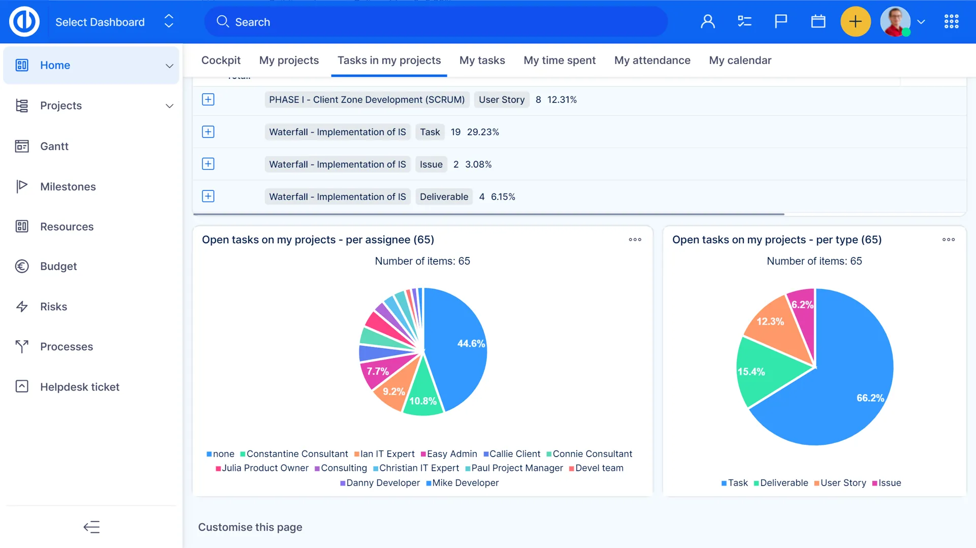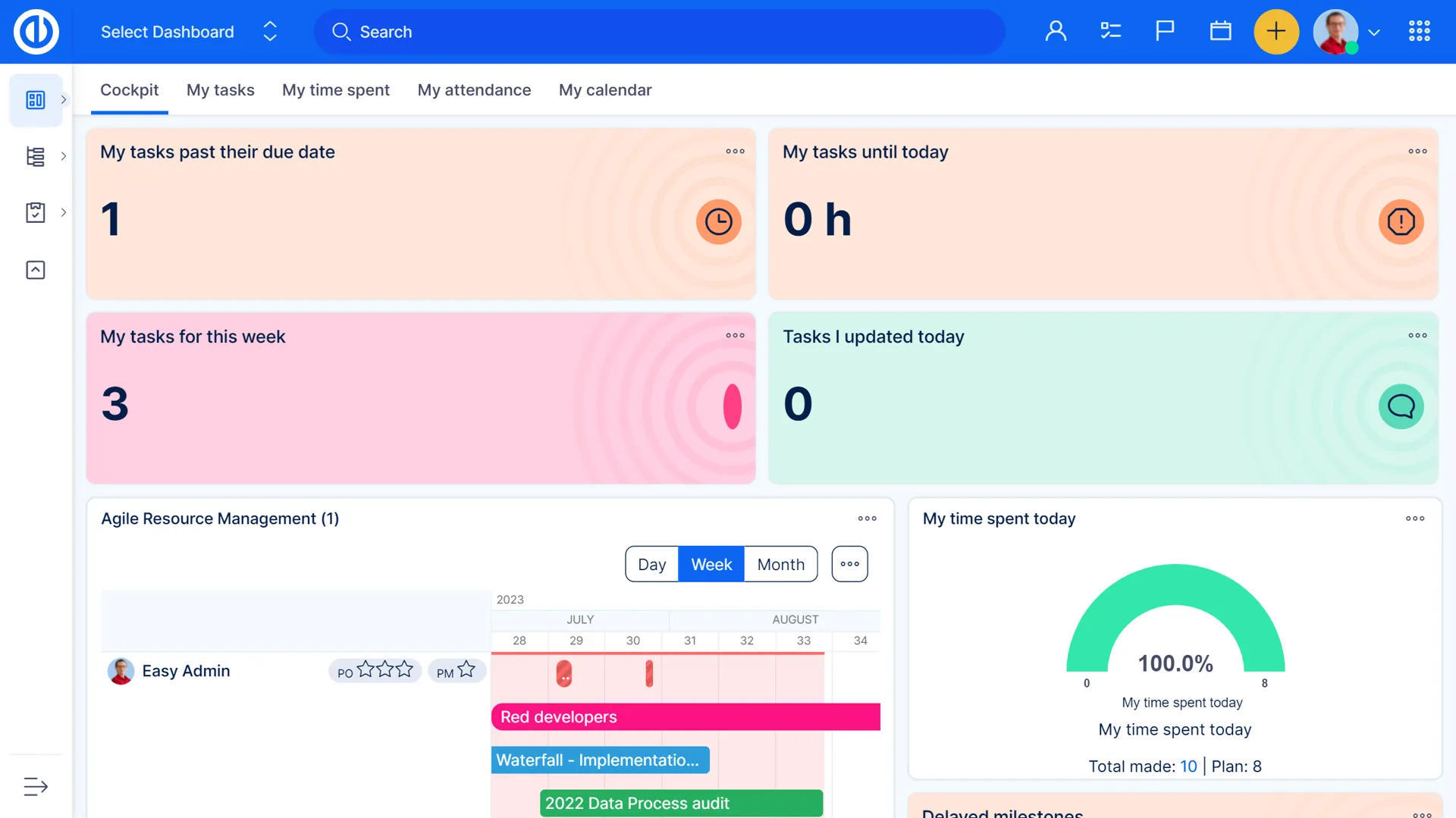 Ви можете зберігати всі свої проекти організованими та доступними через дерево портфоліо з панеллю керування менеджера портфоліо. Живий стрічка та список критичних питань допоможуть вам вирішувати невідкладні питання, а за допомогою додаткових вкладок ви можете керувати навантаженням працівників, поточними спринтами та бюджетами. Використовуйте графіки та діаграми, щоб візуалізувати будь-який список для загальної продуктивності.