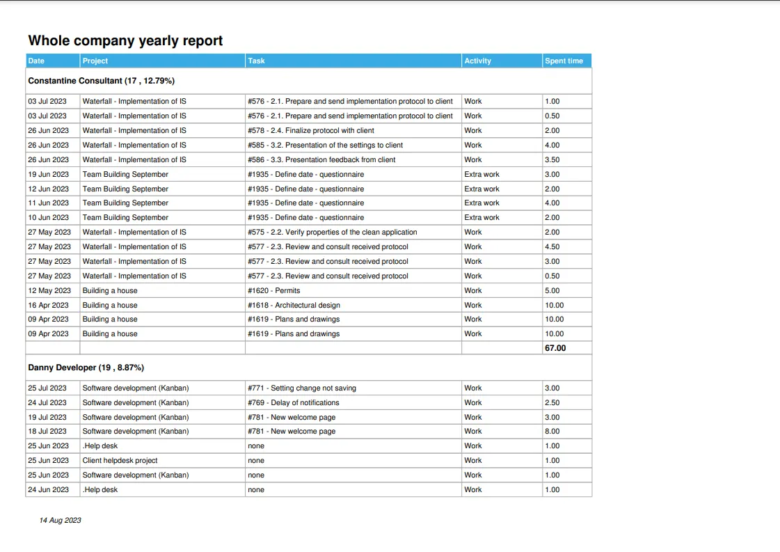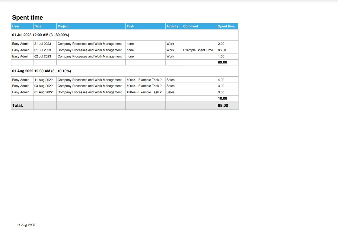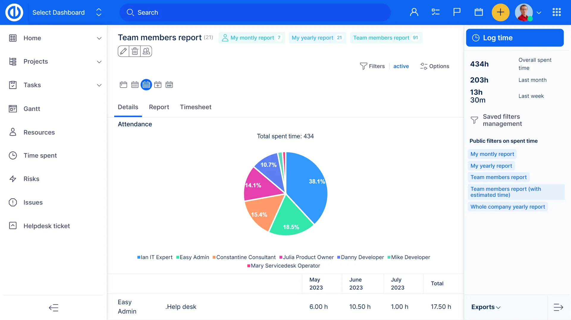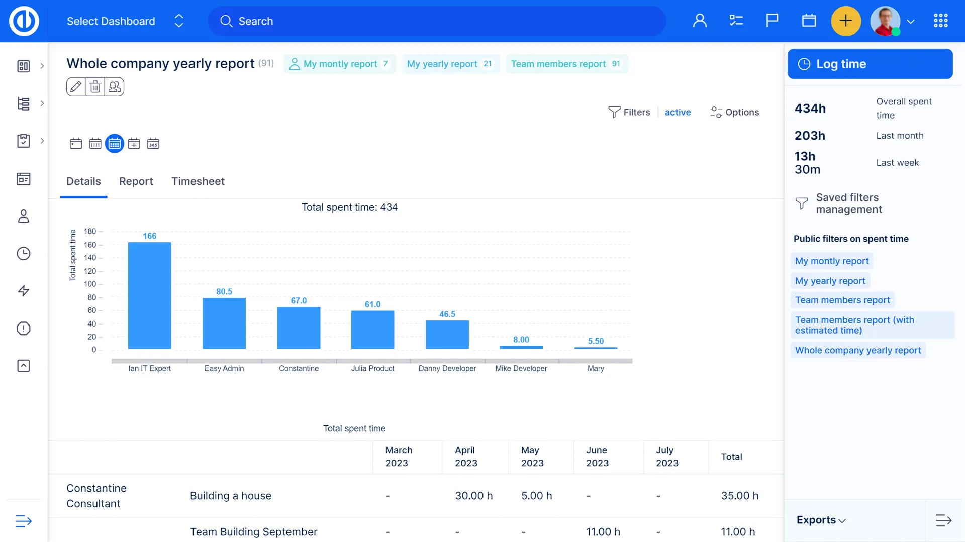 Звіт про час повинен бути важливою частиною будь-якого управління проектами. Чи коли-небудь ви задавалися питанням, скільки часу ви та ваша команда витратили на рахунок минулого місяця? Або скільки годин окремі члени команди працювали на минулому тижні? Скільки годин було витрачено на конкретні проекти? Панель звіту про час тут, щоб вам про це розповісти.