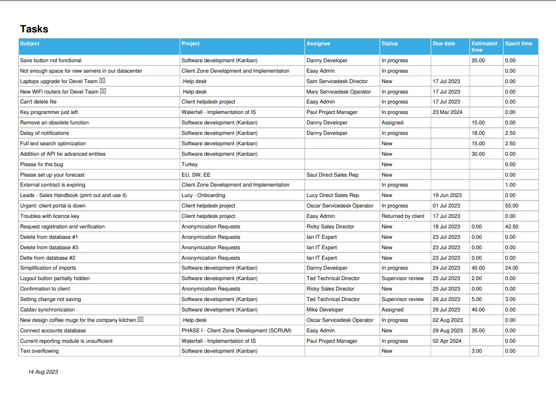 .Приклади експорту: будь-який список завдань, список проектів, записи витраченого часу, експорт деталей завдань тощо.